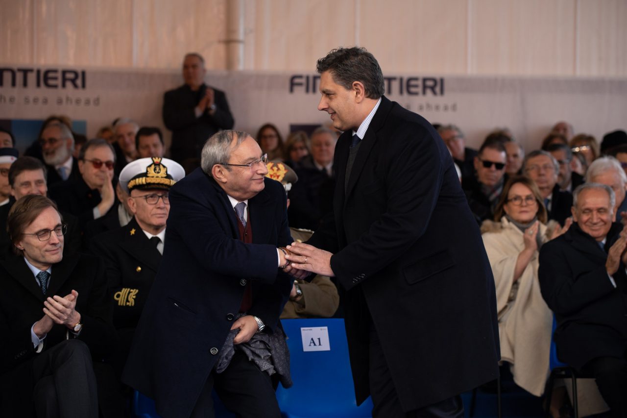 A fare gli onori di casa il Presidente Giampiero Massolo e l’Amministratore Delegato di Fincantieri Giuseppe Bono, che hanno accolto Giovanni Toti, Presidente della Regione Liguria, e il Capo di Stato Maggiore della Marina Militare, Amm. di Squadra Valter Girardelli, oltre a numerose autorità civili e religiose.