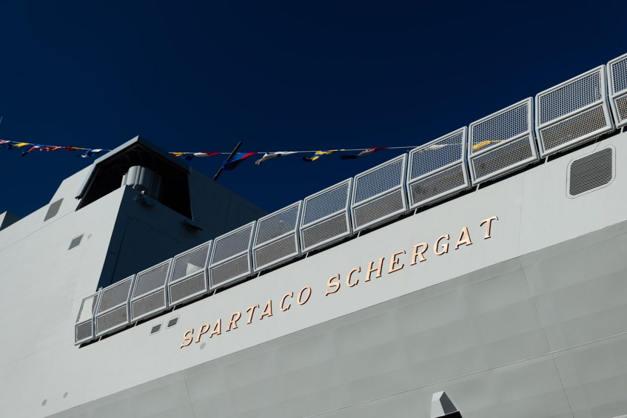 A seguito del varo, l’unità proseguirà le attività di allestimento presso lo stabilimento di Muggiano, a La Spezia, e sarà consegnata nel 2020. Nave “Spartaco Schergat” sarà caratterizzata, come le altre, da un’elevata flessibilità d’impiego e avrà la capacità di operare in tutte le situazioni tattiche. Ha una lunghezza di 144 metri, una larghezza di 19,7 metri e un dislocamento a pieno carico di circa 6.700 tonnellate. Potrà raggiungere una velocità superiore ai 27 nodi con una capacità massima di personale trasportato pari a 200 persone.