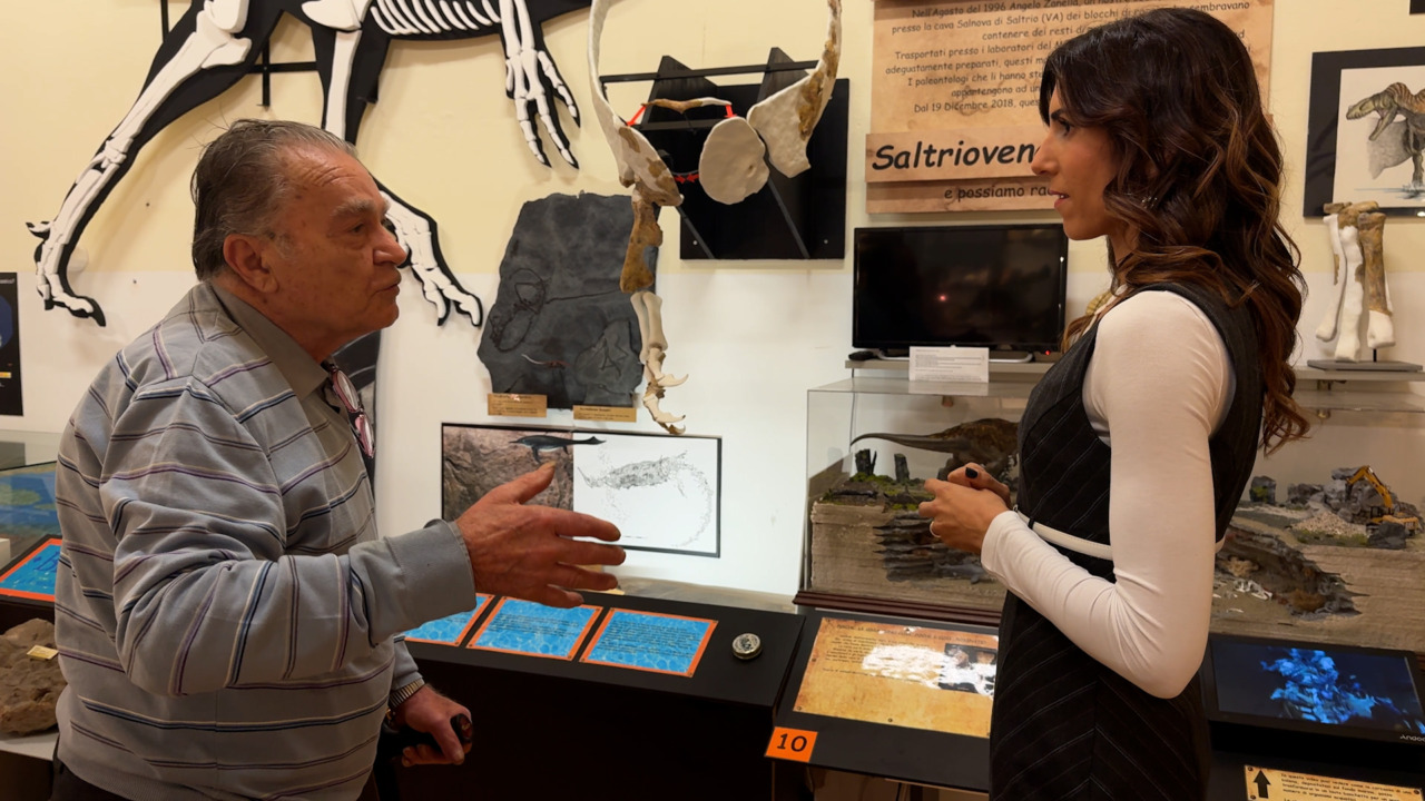 Facciamo un tuffo nei secoli grazie all’allestimento della mostra permanente del centro studi naturalistici dedicata ad Antonio Di Lorenzo, dove tra fossili, riproduzioni fedeli di ambienti preistorici e centinaia di minerali provenienti da tutto il mondo, i volontari spiegano la storia della Terra. Tra loro anche Angelo Zanella, scopritore del Saltriovenator zanellai, che ci racconta il ritrovamento dei resti del dinosauro a cui è stato dato il suo nome.