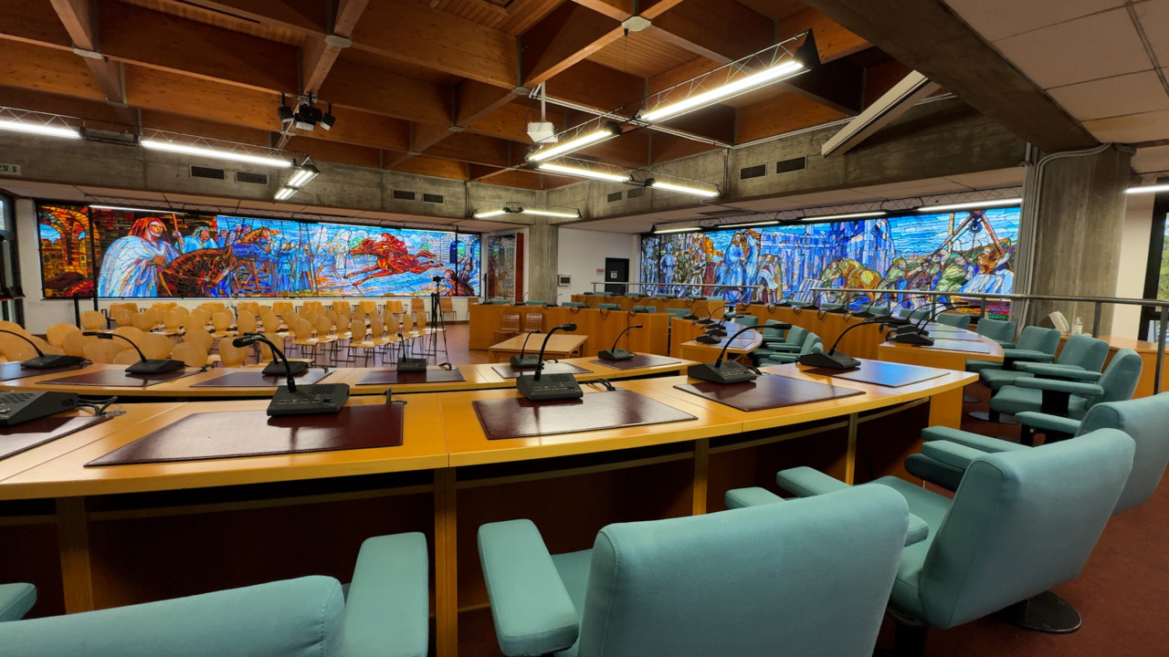 A questo proposito esploriamo Villa Sartirana, immobile storico di pregio inserito nel circuito della Soprintendenza per i Beni Architettonici e per il Paesaggio della Lombardia, oggi sede della grande biblioteca civica, dove si svolgono numerose mostre ed eventi culturali e nel suo parco si mette in scena ogni due anni la rievocazione storica dell’arrivo del condottiero, ad opera della Pro Loco, come ci racconta il presidente Sisto Polito. Siamo accolti dal sindaco Marco Citterio e dall’assessore alla cultura Sara Citterio nella sala consiliare del municipio, impreziosita dai giochi di luce delle splendide vetrate.