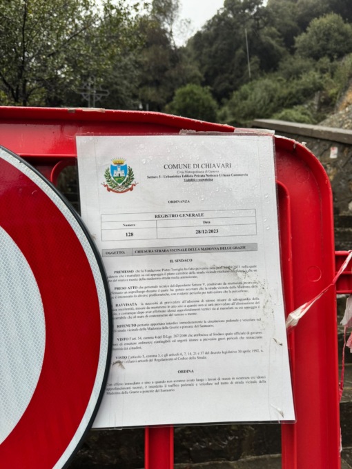 Questa mattina il consigliere comunale PD Antonio Bertani ha presentato un’interrogazione al sindaco di Chiavari- Federico Messuti per chiedere chiarimenti sulla situazione dell’area limitrofa al Santuario delle Grazie, che da un anno è stata completamente abbandonata dal Comune, a seguito dell’ordinanza n°128 del 28 dicembre 2023.