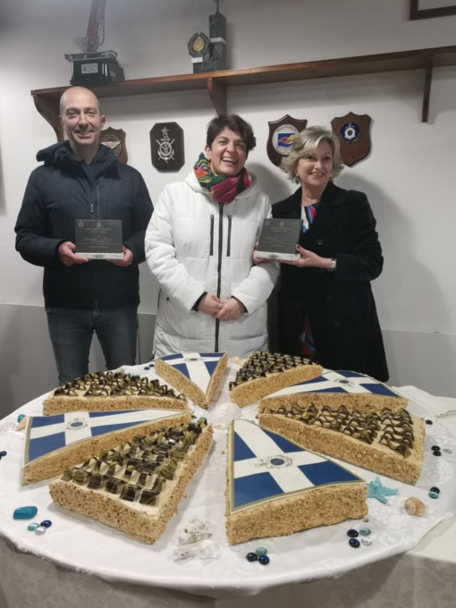 Il brindisi è stato anche occasione per la neo presidente della LNI Chiavari-Lavagna Monica Corte di consegnare una targa, realizzata con l’ardesia della zona da un socio, Ruggero, al sindaco di Chiavari Federico Messuti, all’assessore alla cultura Silvia Stanig e a Stefania Simonetti per l’Accademia del Turismo.