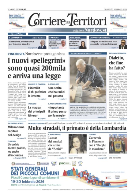 Sul Corriere dei Territori nelle edicole del Nordovest da lunedì 2 a sabato 7 febbraio sono presenti anche molte altre inchieste, curiosità e approfondimenti dalle regioni di Lombardia, Piemonte e Liguria. Ad esempio si dà conto di un’indagine del Codacons, che ha contato l’ammontare dei ricavi per le sanzioni stradali regione per regione. Dalla ricerca emerge come la Lombardia sia ampiamente in testa alle classifiche, e come, tra le grandi città italiane, quella che perdona meno sia proprio Milano. Ancora, un rapporto dell’Istat ha voluto analizzare il livello dele lingue straniere parlate nei nostri territori, in relazione alla tenuta dei dialetti locali: i risultati per i cultori delle proprie radici non sono incoraggianti. E poi, un altro approfondimento ha voluto analizzare l’età media dei lavoratori dipendenti, un dato che nel corso del tempo è in continuo aumento.