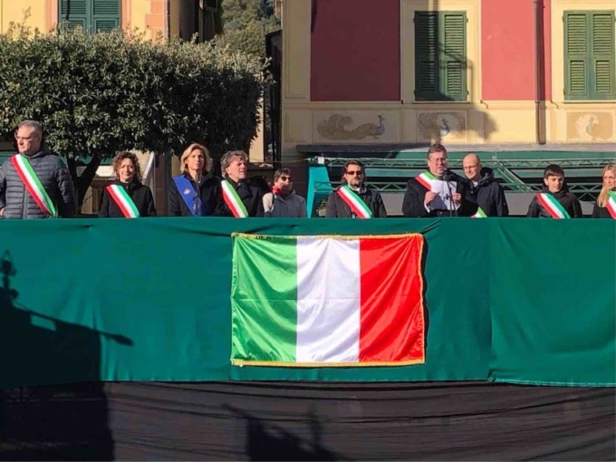 Presenti anche rappresentanze dei Comuni di Recco, Santa Margherita Ligure e Chiavari con i rispettivi gonfaloni.
