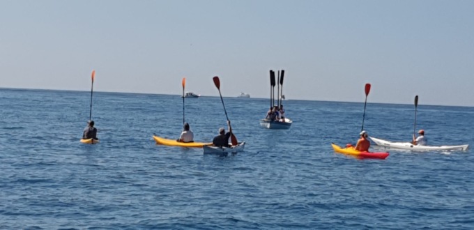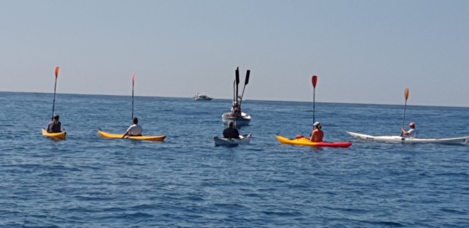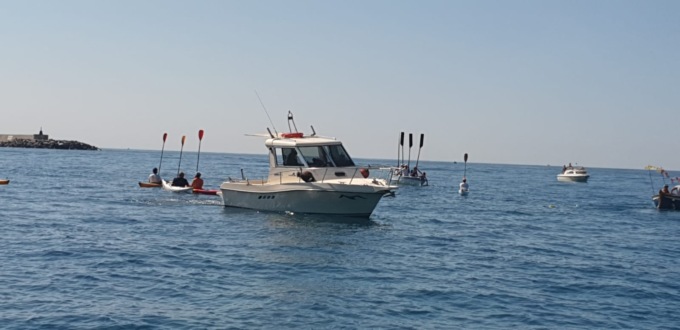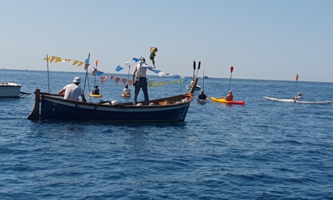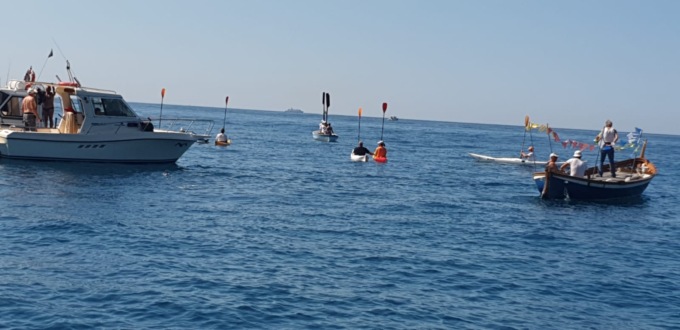 Natanti e canoisti si sono recati fino alla boa dove c’è stato il lancio di fiori, mentre dalla piazza il vescovo Devasini ha benedetto le imbarcazioni; il gozzo della Pro Scogli ha alzato i remi in segno di saluto, mentre risuonavano il Silenzio e poi l’inno nazionale eseguiti dalla Società Filarmonica.