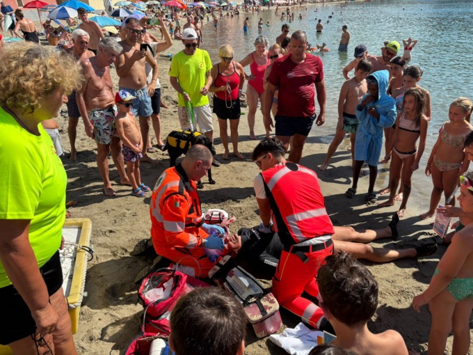 Durante l’evento, si sono susseguite tre simulazioni realistiche: il soccorso a una persona in difficoltà in acqua, effettuato prima da un bagnino e poi con l’ausilio di un cane da salvataggio; il recupero di un infortunato privo di coscienza, con l’esecuzione delle manovre di rianimazione cardio-polmonare; l’intervento su un trauma spinale causato da un tuffo in zona non sicura, con immobilizzazione e trasporto su barella.