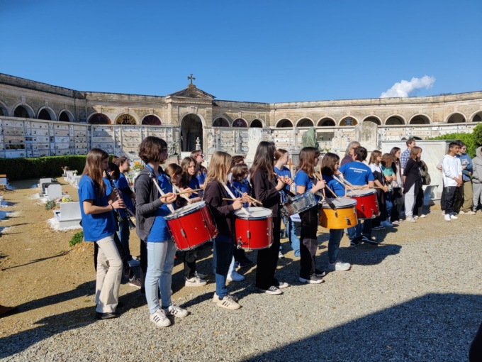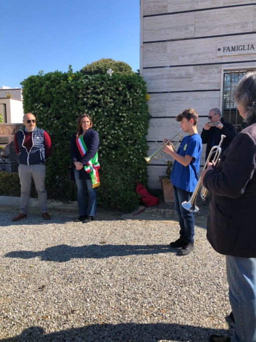 La banda musicale, composta esclusivamente di alunni dell’Istituto Comprensivo, ha eseguito “Bella ciao” e altri canti della Resistenza, musiche dal film “La vità è bella” e, per concludere, l’Inno di Mameli. A intonare con la tromba il Silenzio d’ordinanza un alunno della classe 2B del corso a indirizzo musicale.