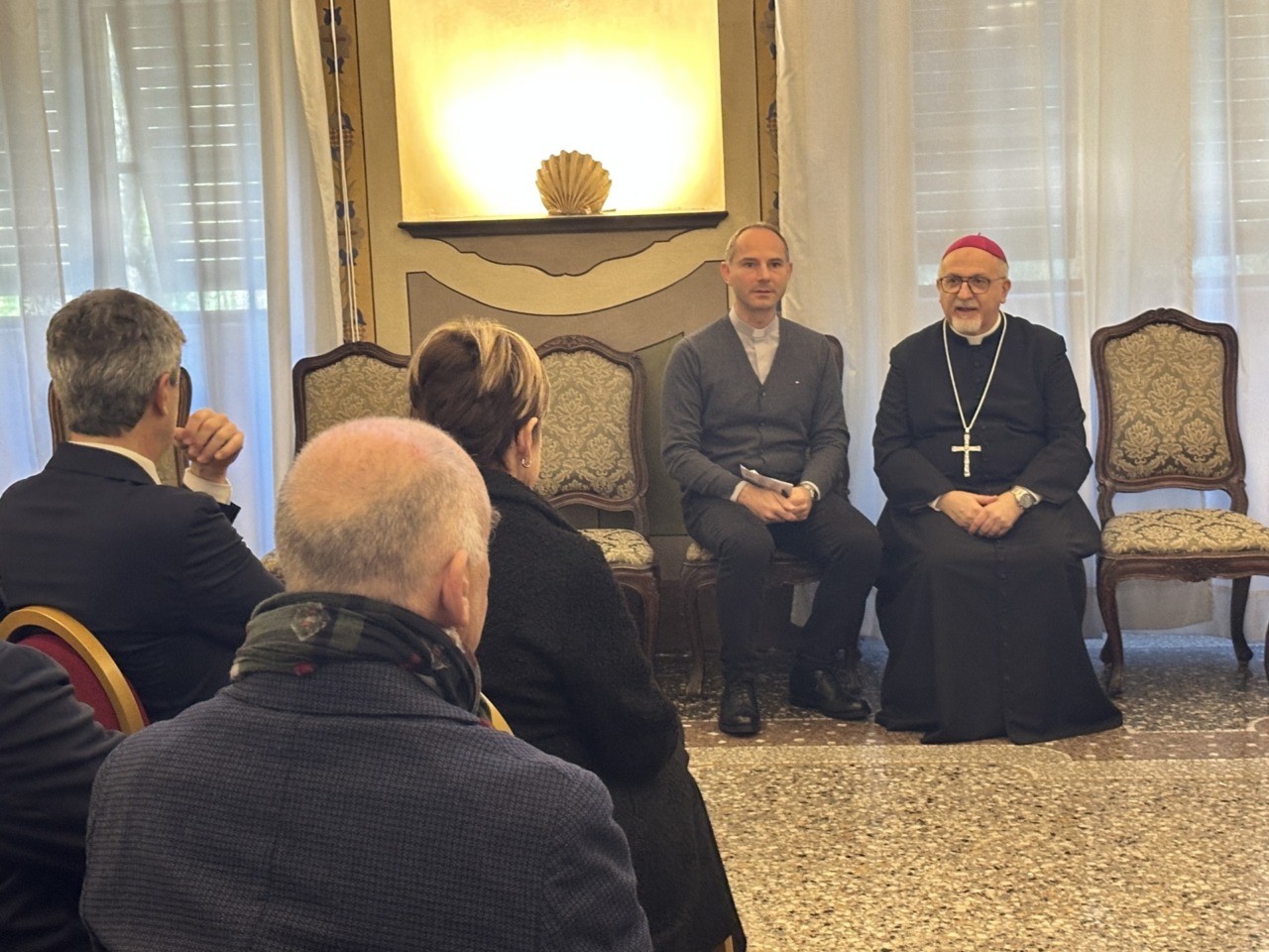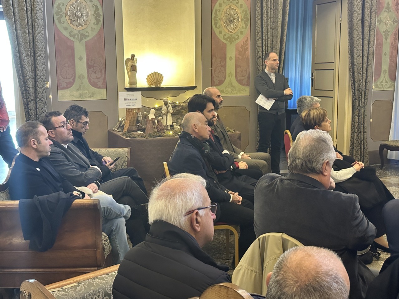 L’incontro si è svolto dopo la messa di Natale per i giornalisti e gli operatori della comunicazione sociale, celebrata sempre oggi, giovedì 18 dicembre, nella Cappella maggiore del Seminario di Chiavari, seguita dal tradizionale scambio di auguri nella Sala di Rappresentanza della Curia.