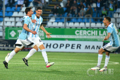 Nel primo tempo il pressing forsennato dell’Entella dà i suoi frutti e all’ottavo minuto Rada segna il goal del vantaggio. Nei minuti finali sono gli ospiti a pressare i biancocelesti ma senza riuscire a raggiungerli. Nel settimo minuto della ripresa gli ospiti realizzano la rete dell’1 a 1 con Paeterman e al nono minuto Schenetti viene espulso per gioco pericoloso su Sciacca. Il Comunale si infiamma al 72esimo con la rete di Capello che firma la vittoria dell’Entella. Un altro turno playoff, un altro passo verso il sogno chiamato serie B.