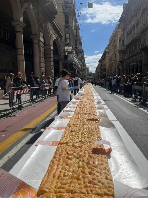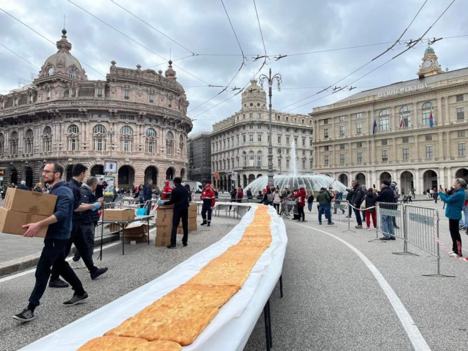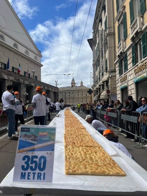 Oggi, sabato 15 aprile, tutti i liguri e i turisti testimoni dell’iniziativa in programma dalle 11, quando la ‘focaccia più lunga del mondo’ è stata posizionata in pieno centro, tra piazza De Ferrari e via XX Settembre, e offerta gratuitamente per festeggiare la presenza a Genova di MSC World Europa.