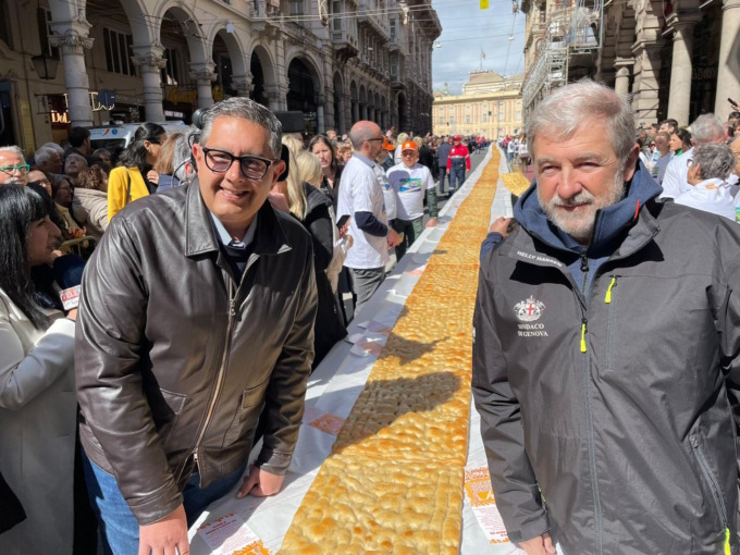 L’iniziativa è organizzata da MSC Crociere in collaborazione con Regione Liguria, Comune di Genova e Camera di Commercio, tra piazza De Ferrari e via XX Settembre che si trasfkrmank in un grande palcoscenico gastronomico: 350 metri di deliziosa “fügassa”, per oltre 1 tonnellata di peso, prodotta da 14 panificatori genovesi di Confcommercio e posizionata su oltre 600 teglie e circa 200 tavoli, servita da decine di allievi e allieve degli Istituti Alberghieri Nino Bergese e Marco Polo, per un totale di oltre 16 mila porzioni.
