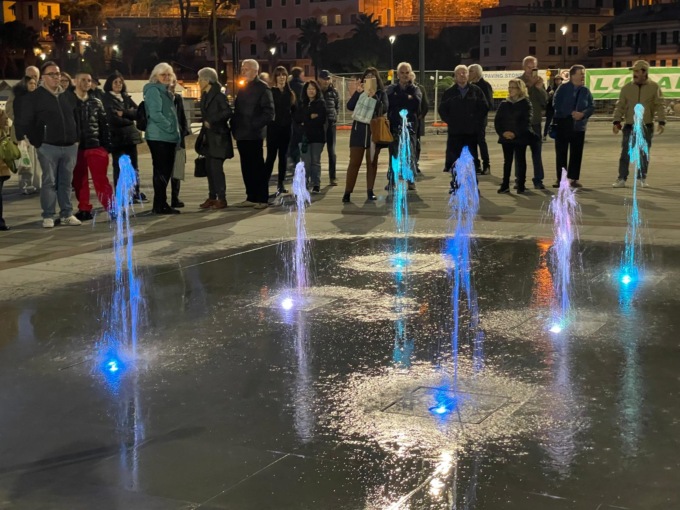 Il sindaco Carlo Gandolfo ha premuto il pulsante di accensione della nuova fontana.
