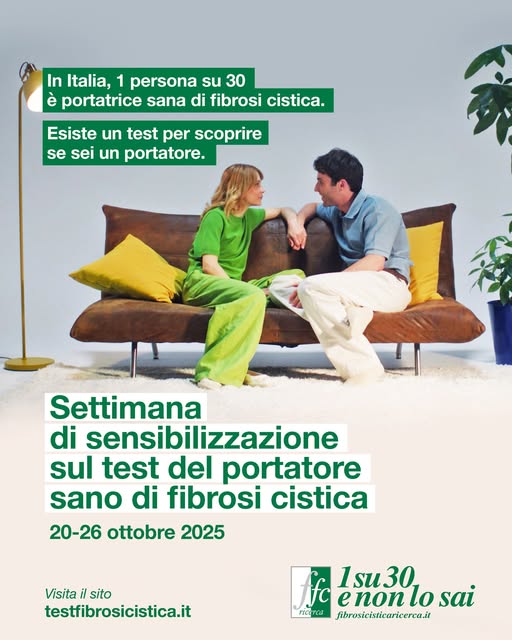 In Italia c’è 1 portatore sano di FC ogni 30 persone circa. A ogni gravidanza, una coppia composta da due portatori sani di FC ha 1 probabilità su 4 di avere un figlio malato. La campagna di informazione “1 su 30 e non lo sai” si propone di raggiungere, informare il maggior numero di persone potenzialmente interessate a eseguire il test del portatore sano di fibrosi cistica.