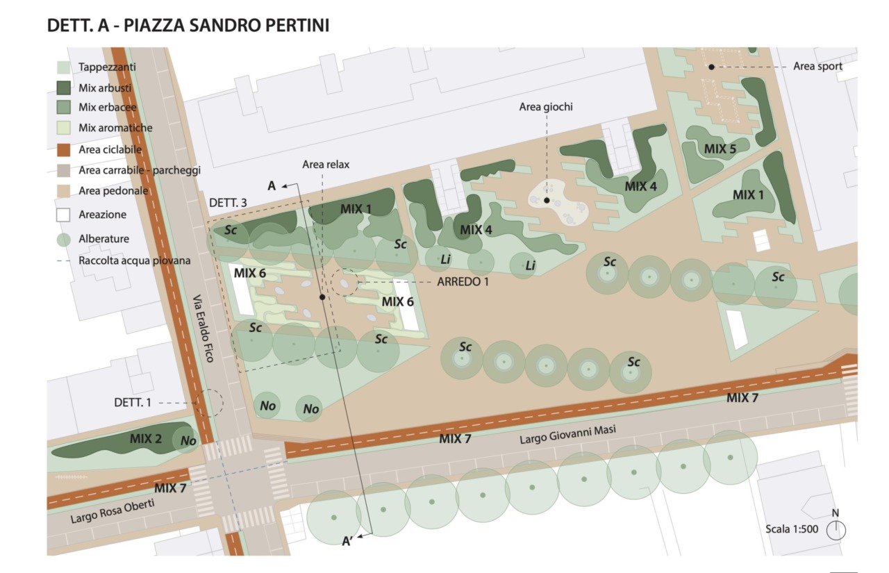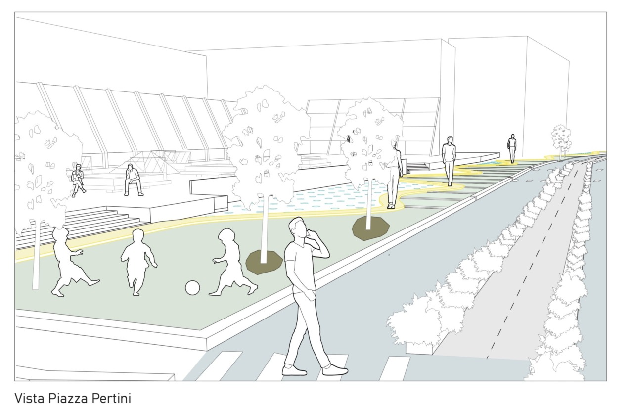 La commissione giudicatrice ha assegnato il primo premio – del valore di mille euro – al progetto denominato LYMPHA sottolineando positivamente l’approccio progettuale fondato sulle cosiddette Nature-based Solutions: de-permeabilizzazione dei suoli, rain garden e un’attenta lettura del contesto urbano.