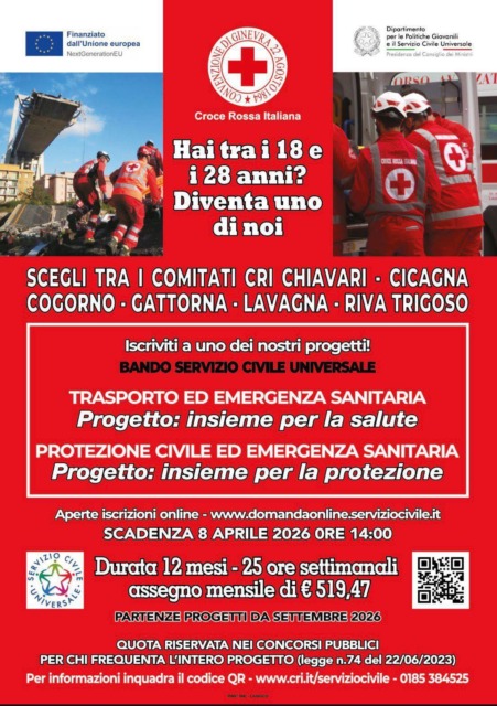 Il servizio potrà essere svolto in una delle sedi territoriali tra Chiavari, Cicagna, Cogorno, Gattorna, Lavagna e Riva Trigoso. La durata del servizio è di 12 mesi e prevede un impegno settimanale di 25 ore con un assegno retributivo mensile di 519,47 euro.