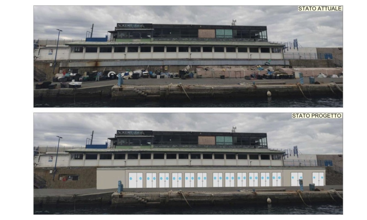 Il cuore dell’intervento, progettato dall’ingegner Paolo Gaggero, è la realizzazione di 15 cale – volumi chiusi in cemento armato collocati sulla banchina del molo foraneo, a ridosso del basamento dell’ex ristorante San Marco – destinate al ricovero ordinato di reti, ceste e attrezzature da pesca. Attualmente queste stazionano in banchina in condizioni di scarso ordine e difficile movimentazione, esposte alle mareggiate, come accaduto nel novembre 2023 e nel novembre 2024.