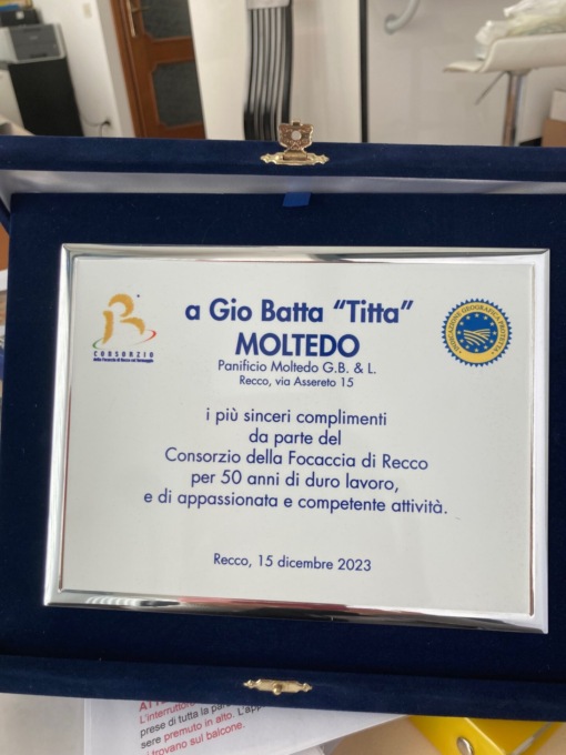 Recco Food Experience Focaccia Mon amour 15 e 16 dicembre (ultimo dell’anno). Consegna targa celebrativa dei 50 anni di attività a Titta Moltedo per il panificio di via Biagio Assereto. Raggiungimento 100.000 follower su Instagram focacciadirecco_igp