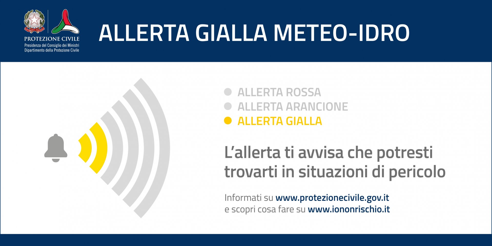 Qui la scansione oraria dell’allerta e l’infografica nazionale per l’allerta gialla: