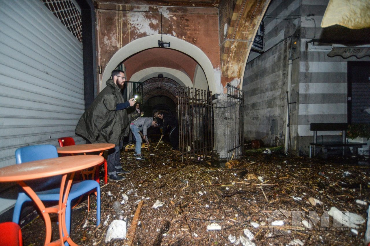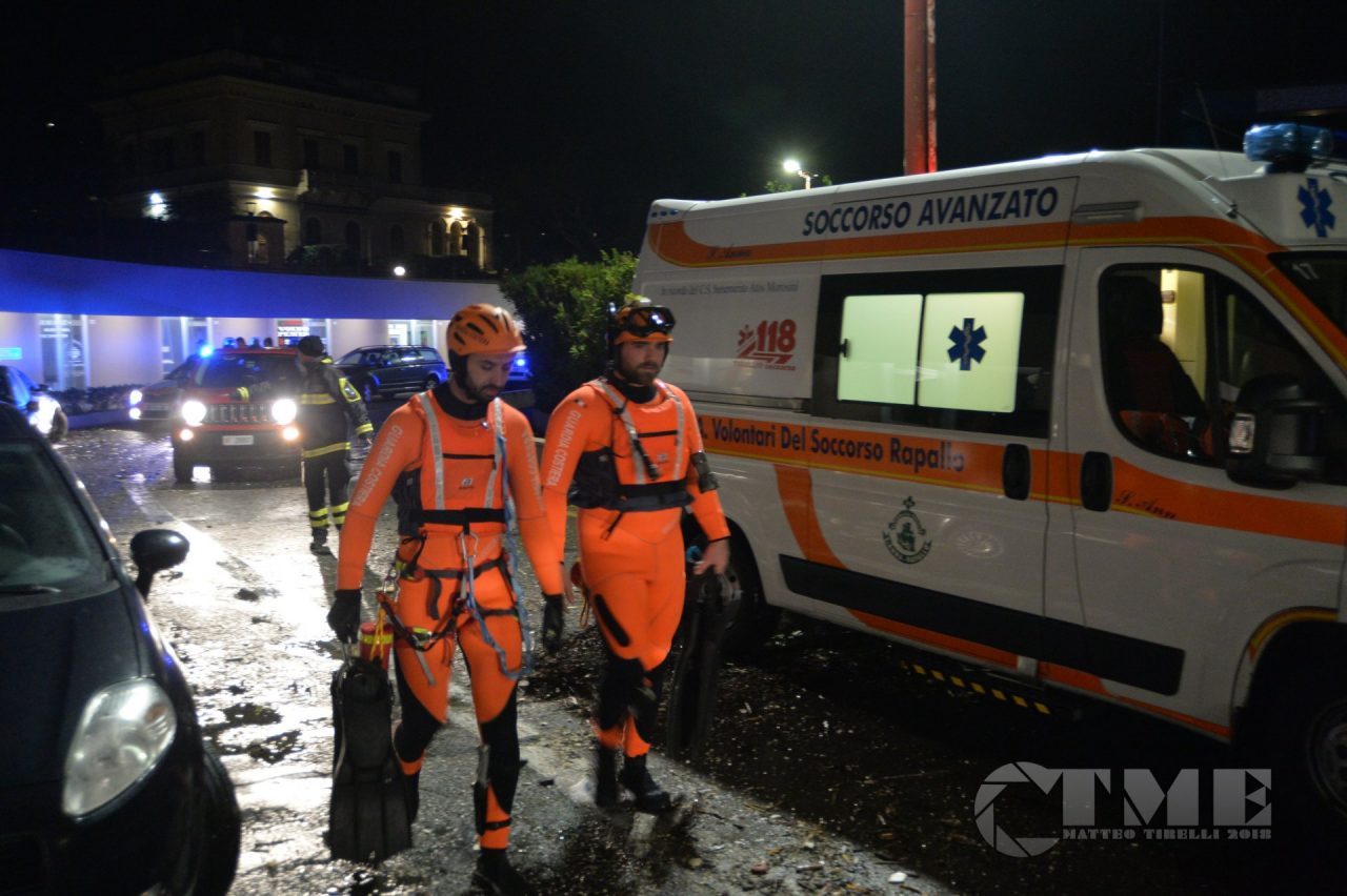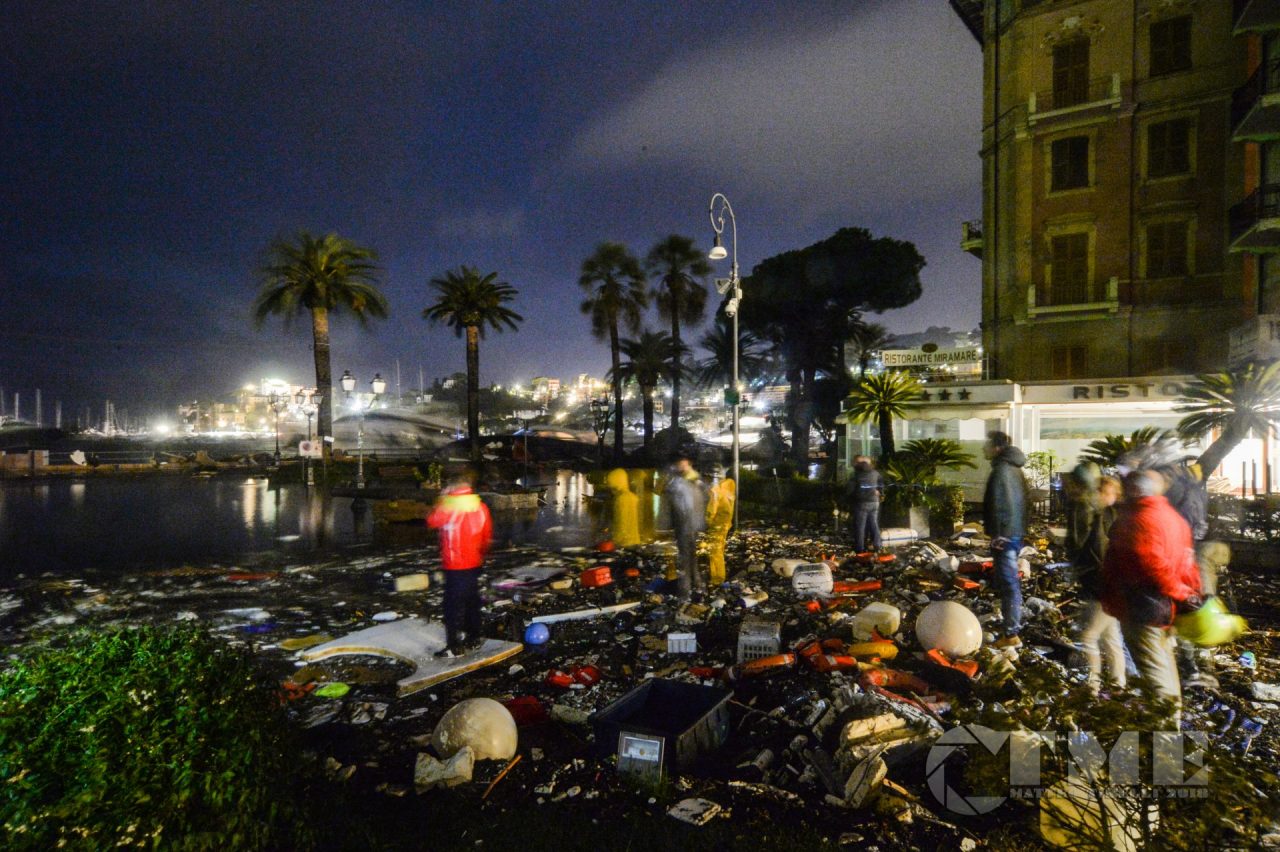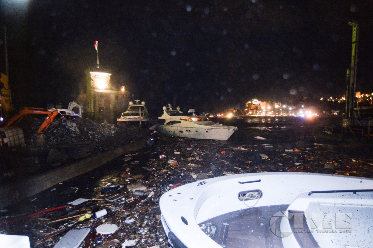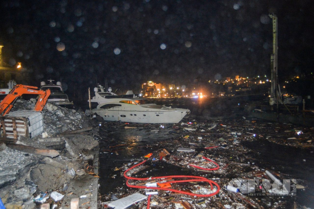 Nel buio della notte è impossibile rendersi conto delle reali condizioni. L’acre odore di gasolio e le carcasse di decine di yacht scaraventati dalle onde sulla scogliera del lungomare sono soltanto il preludio dello scenario apocalittico in cui sta per risvegliarsi Rapallo. Paura al Porto Carlo Riva, letteralmente distrutto dalla furia del mare, dove 19 marinai sono rimasti intrappolati per ore sulla diga est, dopo essersi legati ai lampioni per non venire travolti dalle onde incessanti.