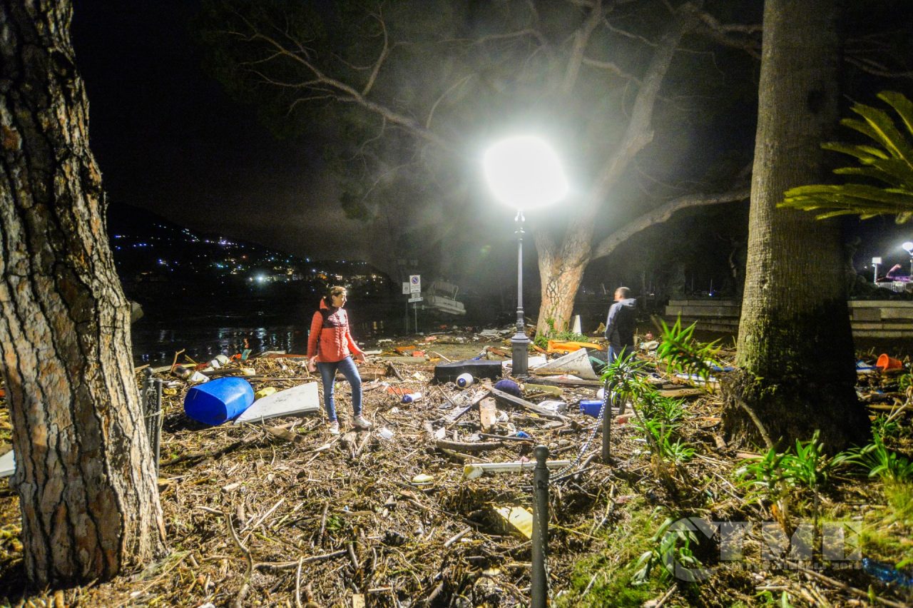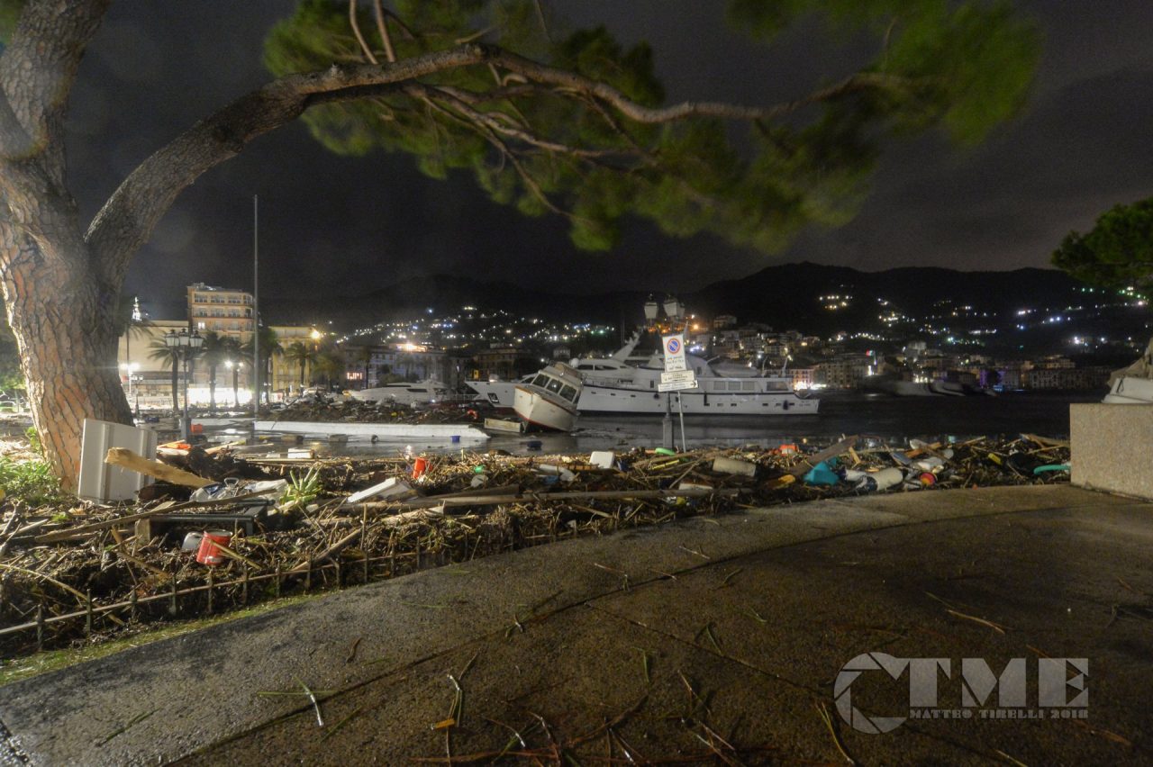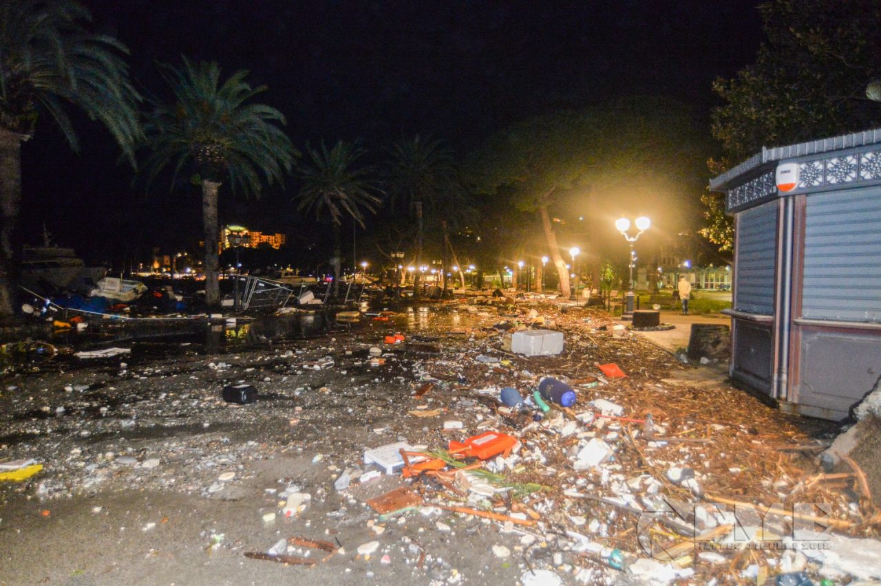 Da villa Porticciolo a San Michele, lo scenario è apocalittico. Le onde che hanno flagellato per tutta la giornata le banchine del Porto Carlo Riva hanno causato la rottura di numerosi ormeggi, sia lungo la diga esterna che lungo il molo numero 3. Decine di maxi yacht e imbarcazioni di ogni dimensione sono andate alla deriva fino a schiantarsi sulle scogliere del litorale. Numerosi anche i natanti colati a picco. Stessa sorte è toccata anche alla maggior parte dei pontili degli stabilimenti balneari e a quello di attracco dei battelli. Notevoli anche i danni alle attività lungo la costa, come a San Michele di Pagana o nel tratto di lungomare compreso tra il castello e il chiosco della musica dove intere verande sono state spazzate via dalla forza del mare.