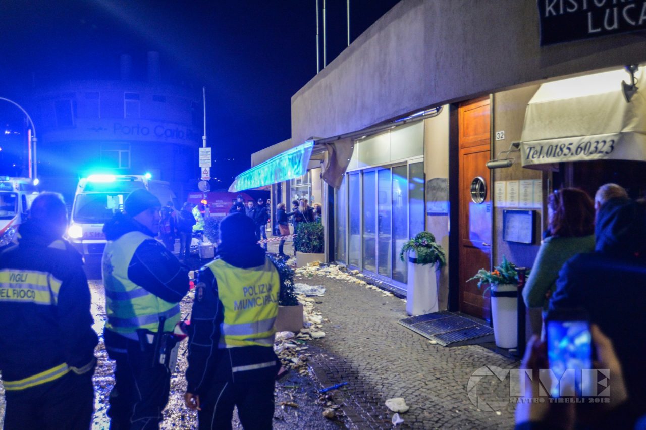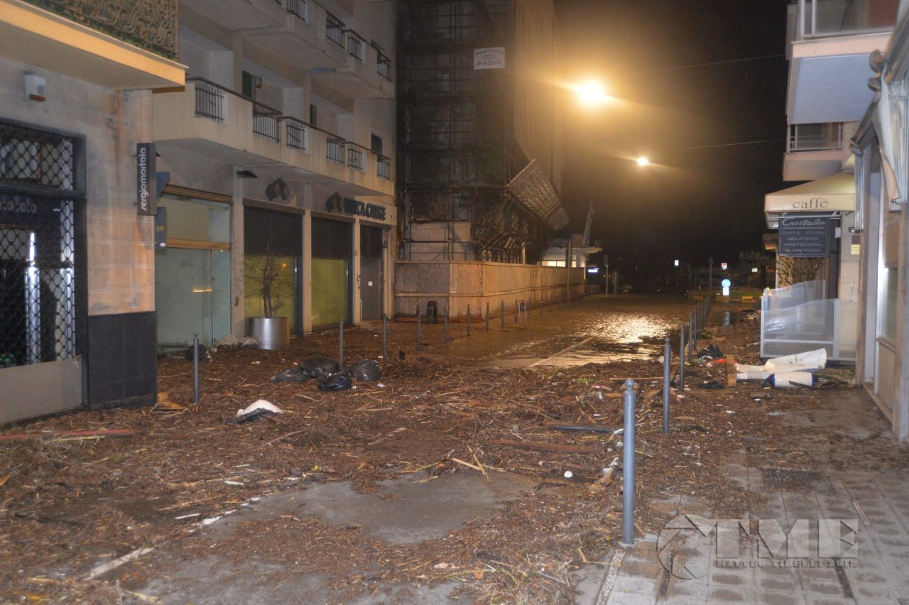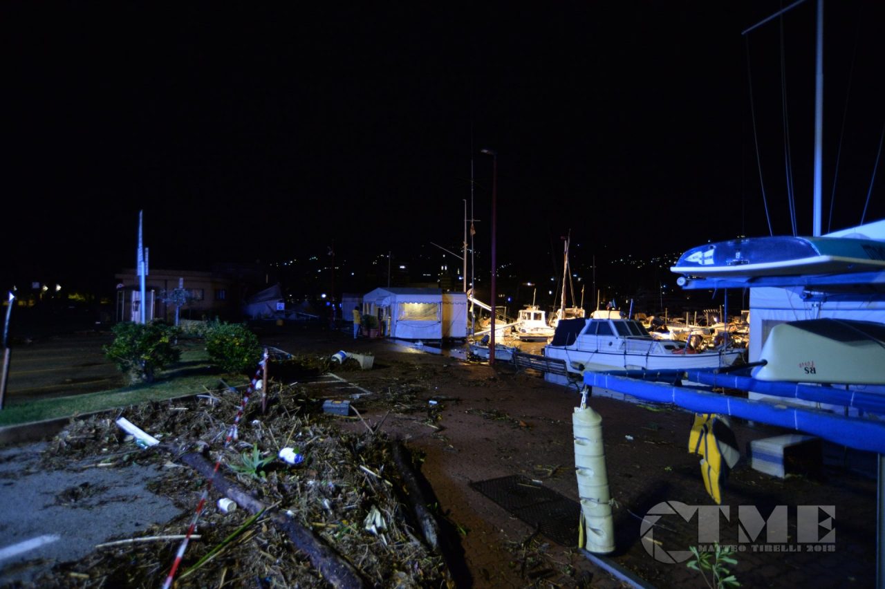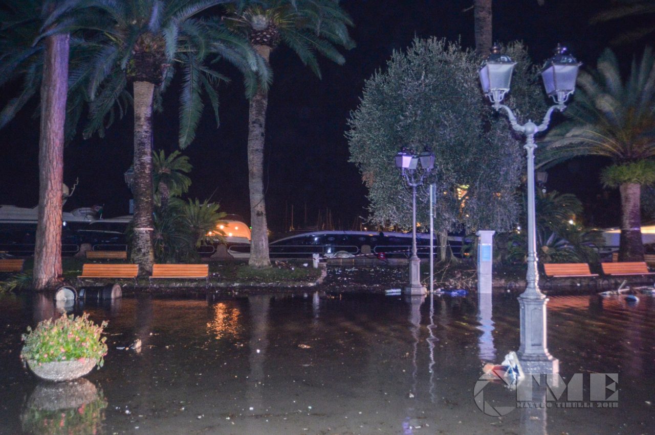 Da villa Porticciolo a San Michele, lo scenario è apocalittico. Le onde che hanno flagellato per tutta la giornata le banchine del Porto Carlo Riva hanno causato la rottura di numerosi ormeggi, sia lungo la diga esterna che lungo il molo numero 3. Decine di maxi yacht e imbarcazioni di ogni dimensione sono andate alla deriva fino a schiantarsi sulle scogliere del litorale. Numerosi anche i natanti colati a picco. Stessa sorte è toccata anche alla maggior parte dei pontili degli stabilimenti balneari e a quello di attracco dei battelli. Notevoli anche i danni alle attività lungo la costa, come a San Michele di Pagana o nel tratto di lungomare compreso tra il castello e il chiosco della musica dove intere verande sono state spazzate via dalla forza del mare.