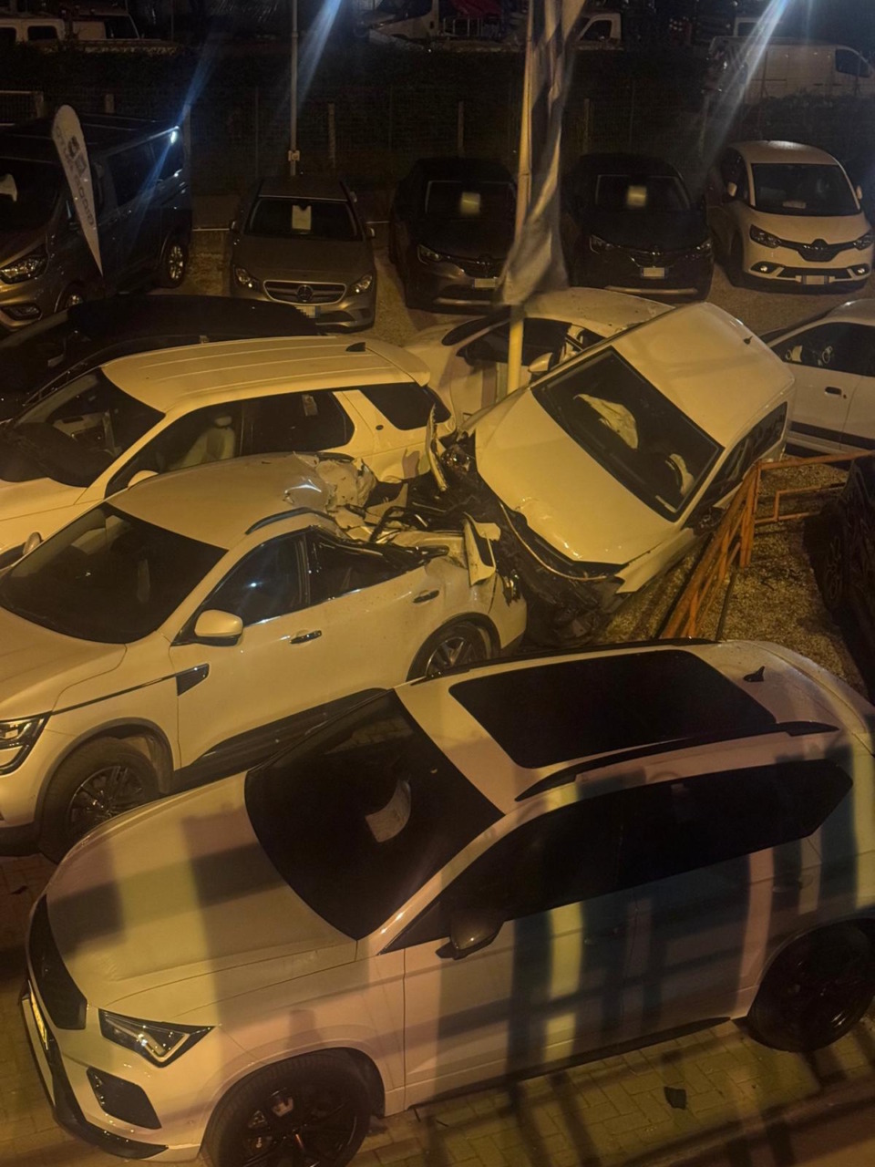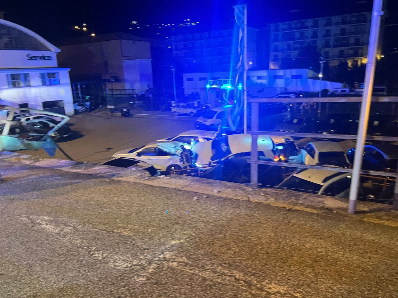 Rocambolesca vicenda a Chiavari la scorsa notte, intorno all’una: un’automobile intenta a percorrere viale Kasman, in direzione Carasco, ha sfondato la ringhiera della carreggiata e ha finito la sua corsa nell’area sottostante, sede di un concessionario d’auto, colpendo altre vetture lì presenti.
