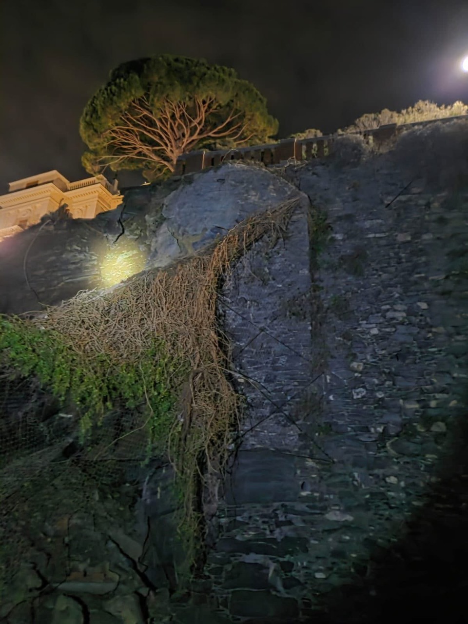L’allarme è scattato intorno alle 19 nei pressi della zona giochi all’altezza dell’ex cappella di San Rocco, dove il cedimento del costone ha trascinato via anche il parapetto della piazza, mobilitando immediatamente i Vigili del Fuoco, la Polizia Locale e i Carabinieri per la messa in sicurezza dell’area.