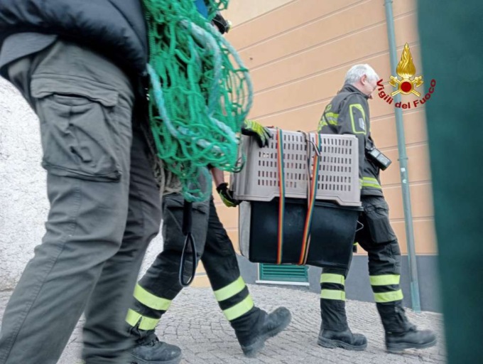 Grazie ad un bastone telescopico, sono riusciti a prendere al guinzaglio l’animale e porlo dapprima in una gabbia e, successivamente, in una gabbia per il trasporto.