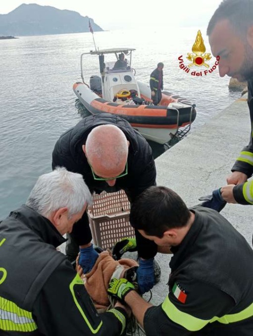 I Vigili del Fuoco sono accorsi sia via mare con il battello pneumatico con i sommozzatori, che via terra con la squadra di Rapallo.