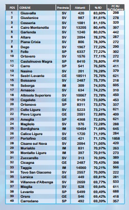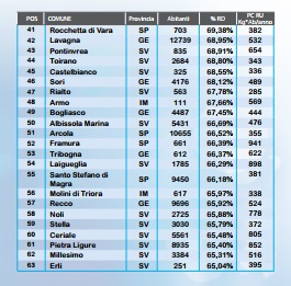 In coda Genova e Ventimiglia con rispettivamente il 33% e il 27%.