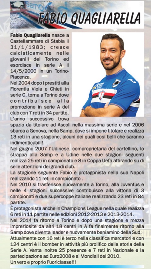 A Fabio Quagliarella la 34sima edizione della Rete d’Argento, riconoscimento storico del Sampdoria Club G.De Paoli di Lavagna.
