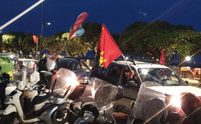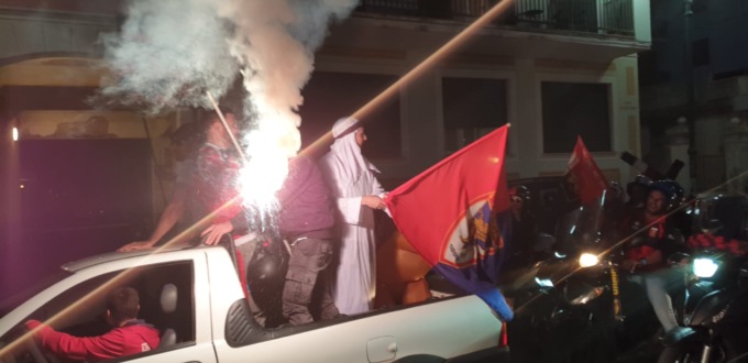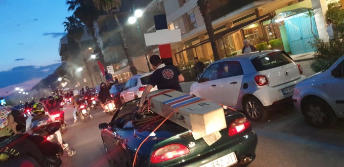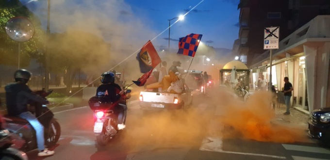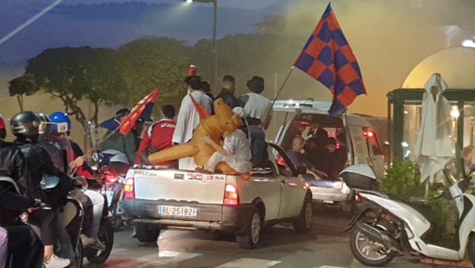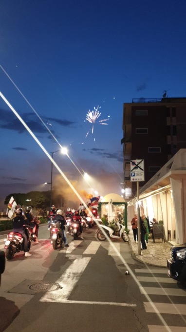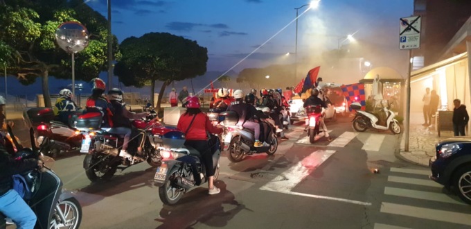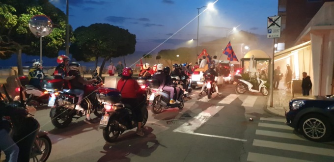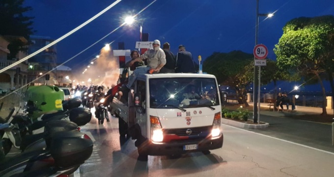 così, con manifesti affissi in zona, i tifosi genoani ieri si sono radunati nella serata di ieri da Lavagna sino al lungomare di Chiavari. Nel carosello non è mancata neanche una bara e i fuochi di artificio.