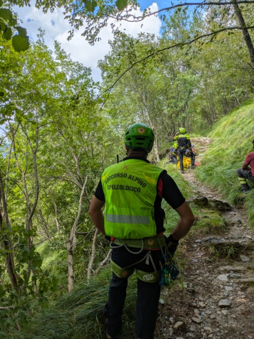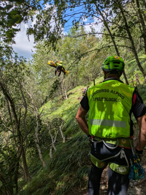 L’uomo, con patologie pregresse, era caduto in più di un’occasione nel giro di pochi minuti e lamentava dolori alla schiena. Verificati effettivamente un trauma alla colonna e la zona impervia, si è alzato in volo l’elisoccorso Drago. Nel frattempo il paziente è stato medicato e stabilizzato, quindi posto su una materassino a depressione con collare cervicale.