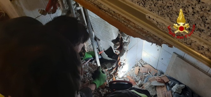 Individuato sommariamente il punto dove si trovava il felino, è stato creato un piccolo foro di ispezione dove è stata inserita una telecamera sonda, che si usa generalmente in soccorsi su macerie. Una volta localizzato l’animale si è provveduto a creare un varco nella canna fumaria ed estrarre l’animale in buona condizione di salute.