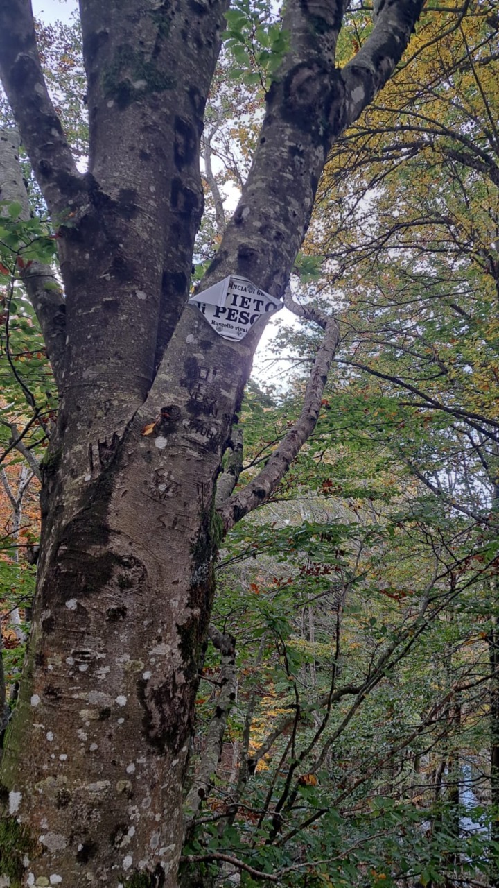 Oltre al danneggiamento della segnaletica, sono comparse scritte a vernice bianca direttamente sui tronchi di diversi alberi: frasi offensive e segni che deturpano un’area naturale particolarmente suggestiva e frequentata da escursionisti e famiglie.