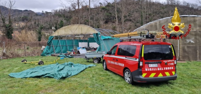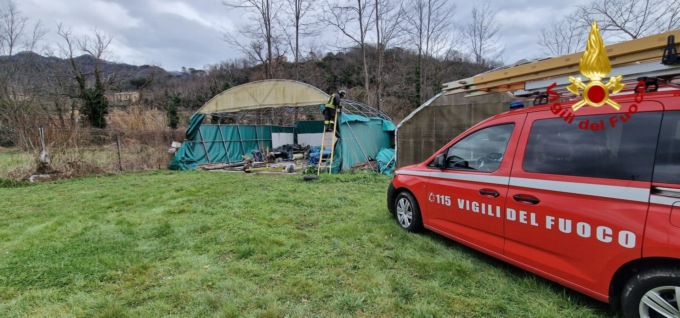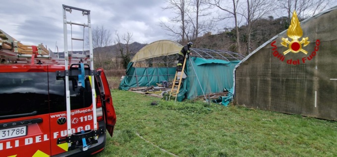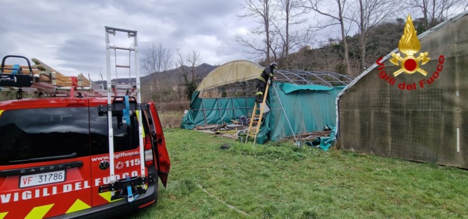 A causa del forte vento alzatosi oggi, lunedì 27 febbraio, in val Fontanabuona, un hangar del campo volo Valerio Gloria Lanza, a San Colombano Certenoli, è stato scoperchiato. I vigili del fuoco sono intervenuti per mettere in sicurezza il fabbricato e provvedere al ripristino con dei teli.