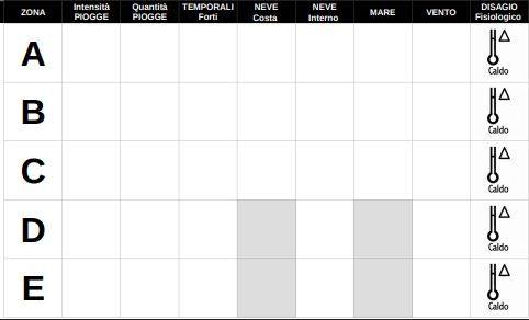 Nelle immagini le tabelle con i fenomeni previsti per oggi, lunedì 8,