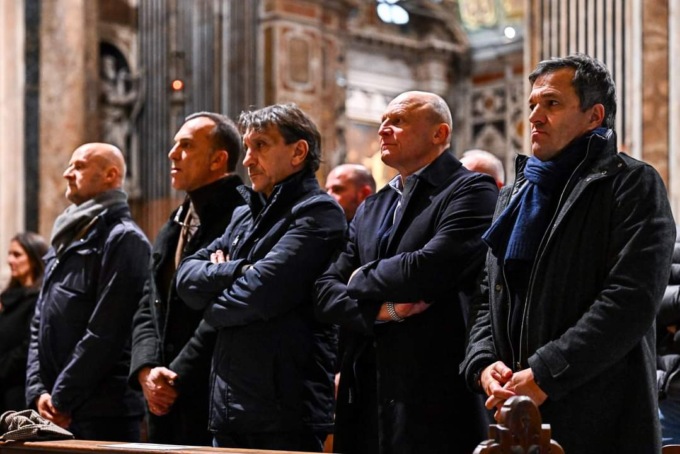 Attilio Lombardo (collaboratore tecnico Italia - ex giocatore Sampdoria)-Marco Branca (ex giocatore Sampdoria)-Ivano Bonetti (ex giocatore Sampdoria)-Dejan Stankovic (allenatore Sampdoria)-Pietro Vierchowod (ex giocatore Sampdoria)-Fausto Pari (ex giocatore Sampdoria)
