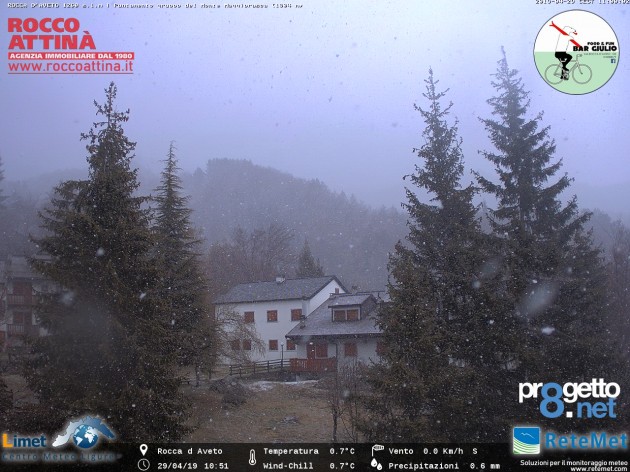 Nevicata in corso, in Val d’Aveto. Come testimoniano anche le telecamere (nella foto in alto, Prato della Cipolla alle 11.27), fiocchi bianchi misti a pioggia stanno cadendo in queste ore in vallata: le temperatura vanno da meno 2 a meno 3 grado al Prato della Cipolla e Monte Bue, mentre 0.6° a Rocca d’Aveto. Nel pomeriggio previsto cielo da poco nuvoloso a nuvoloso ma con scarsa possibilità di piogge. Vento da Nord-Nord-Est con intensità di 22 Km/h. Temperatura 8 °C. Dalla serata cielo da poco nuvoloso a nuvoloso ma con scarsa possibilità di piogge. Il Vento soffierà da Nord-Nord-Ovest con intensità di 11 Km/h.
