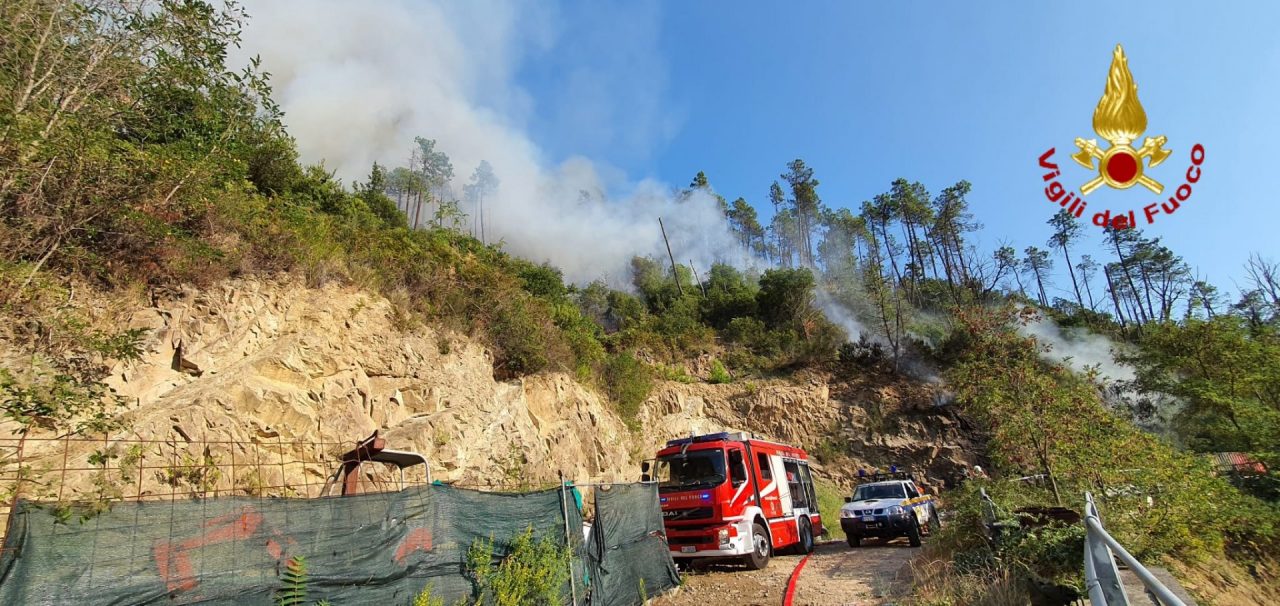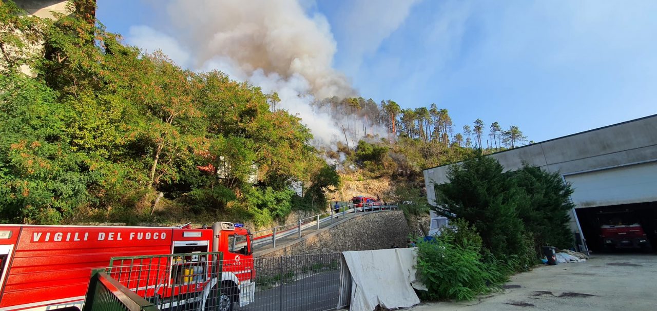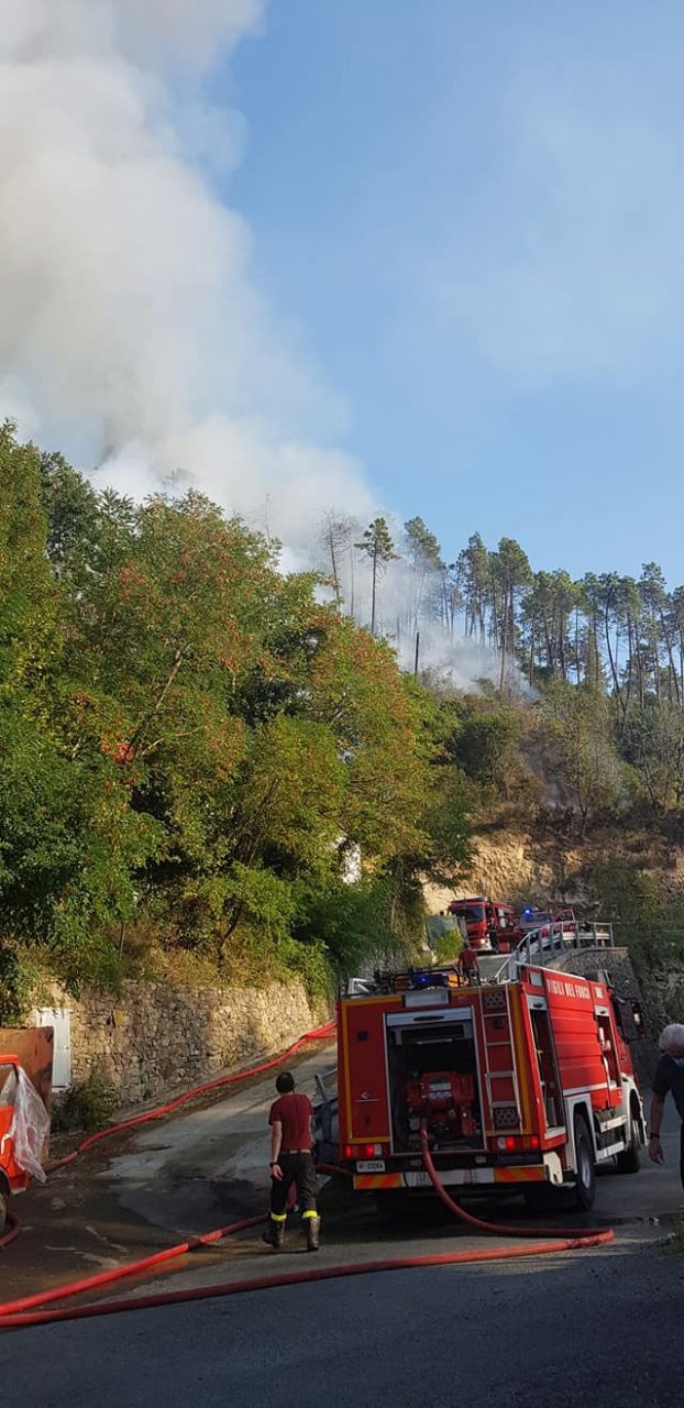 Fiamme tra gli alberi a cavallo fra Casarza Ligure e Sestri Levante, al confine con la strada che sale verso il Bracco. La colonna di fumo si è alzata tra il verde poco fa (poco dopo le 17) e subito è scattato l’intervento dei Vigili del Fuoco e dei volontari a terra, a cui – ha scritto in questi minuti il Sindaco di Sestri Ghio – dovrebbero presto aggiungersi anche i mezzi aerei.