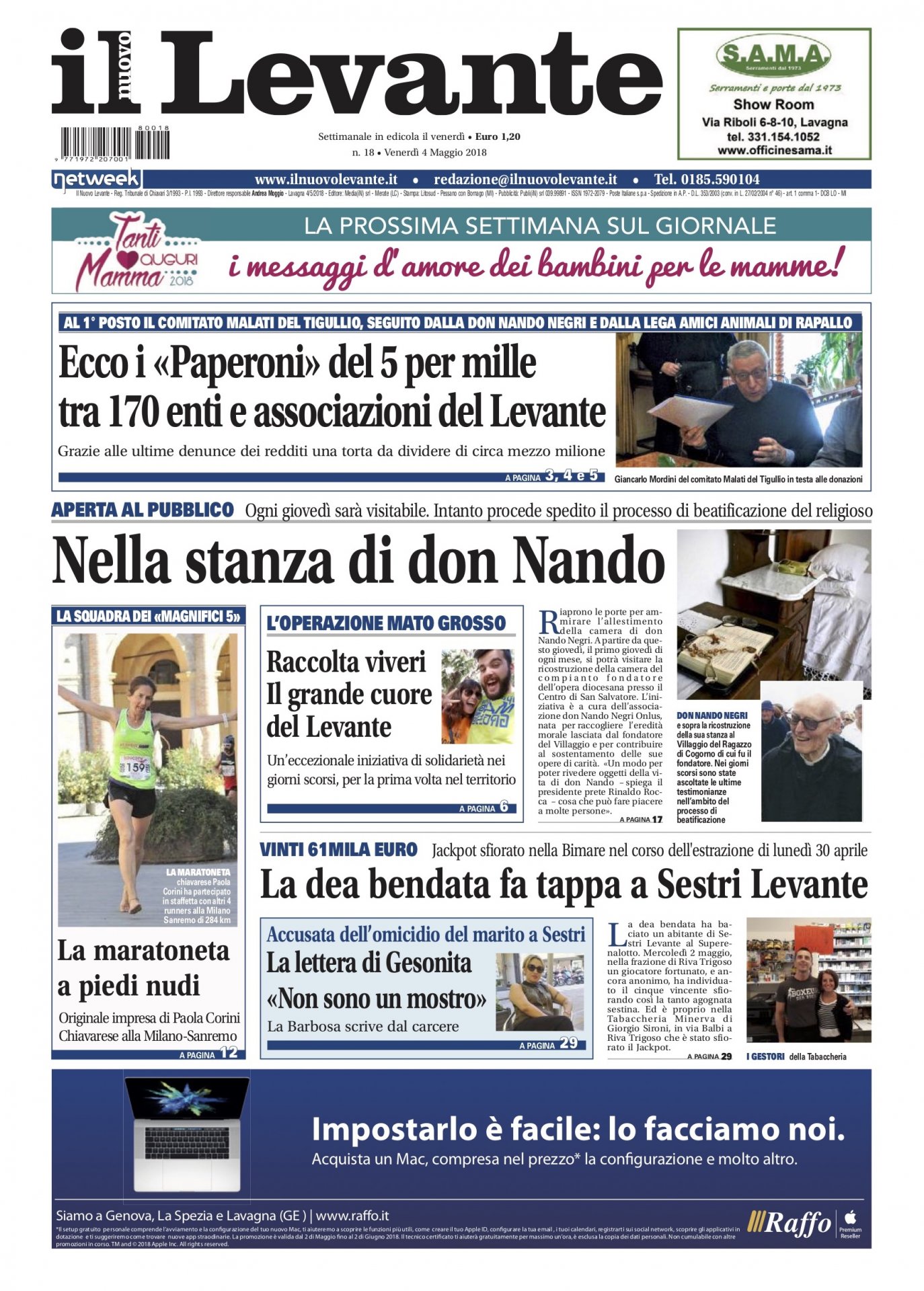Oggi, venerdì 4 maggio, è in edicola il diciottesimo numero dell’anno de Il Nuovo Levante.