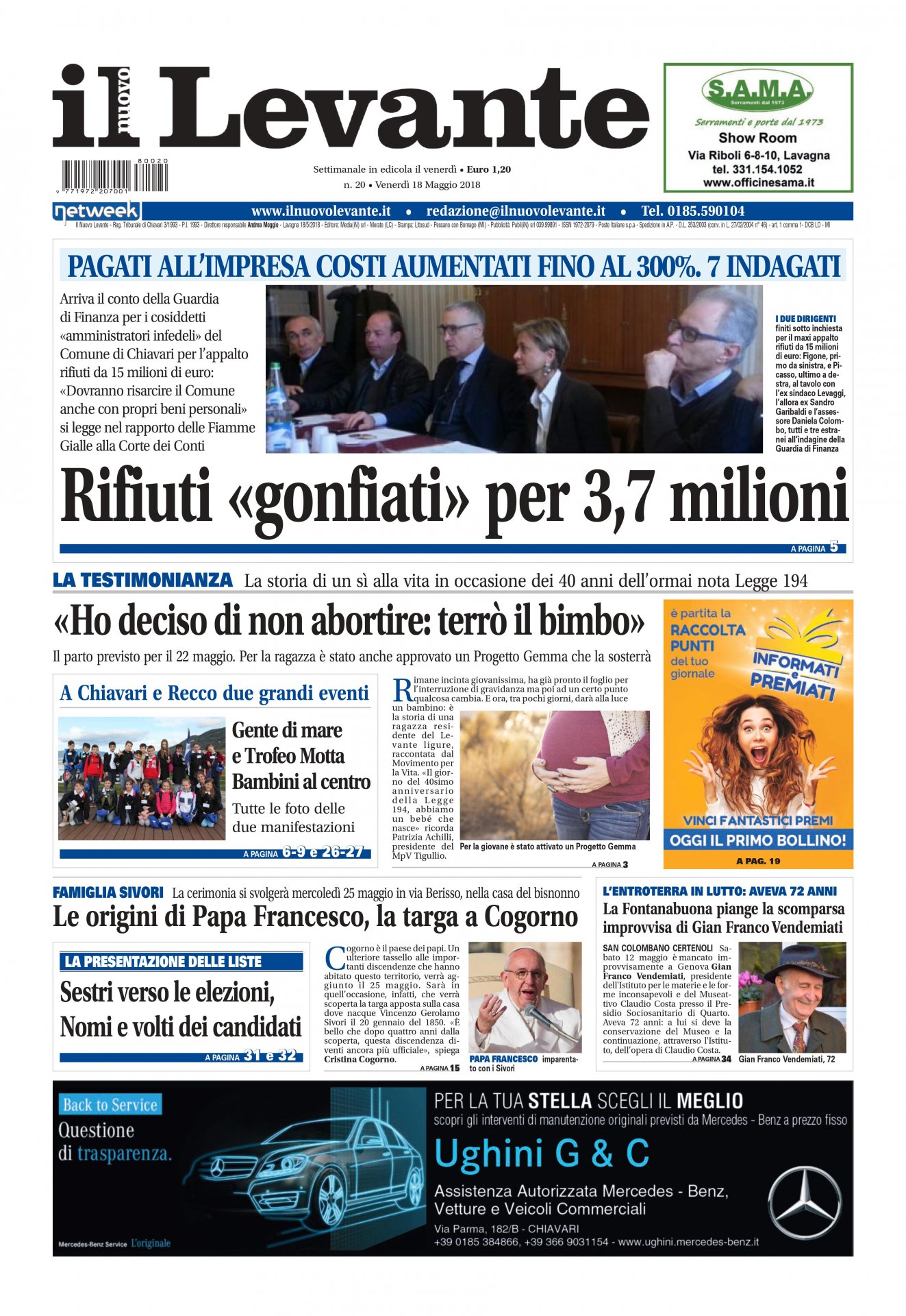 Oggi, venerdì 18 maggio, è in edicola il ventesimo numero dell’anno de Il Nuovo Levante.