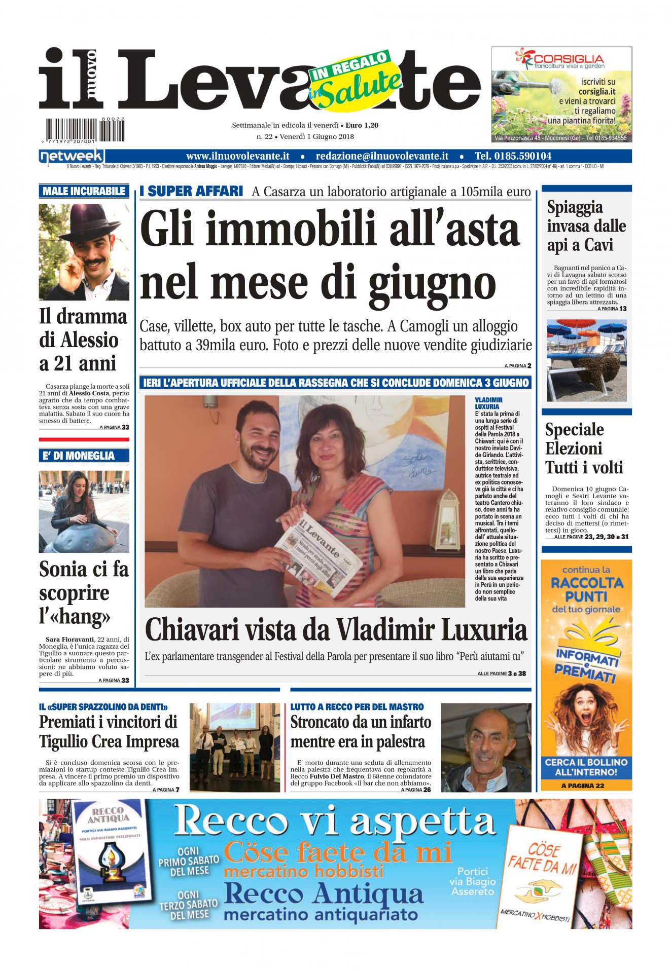 Oggi, venerdì 1° giugno, è in edicola il  ventiduesimo numero dell’anno de Il Nuovo Levante.