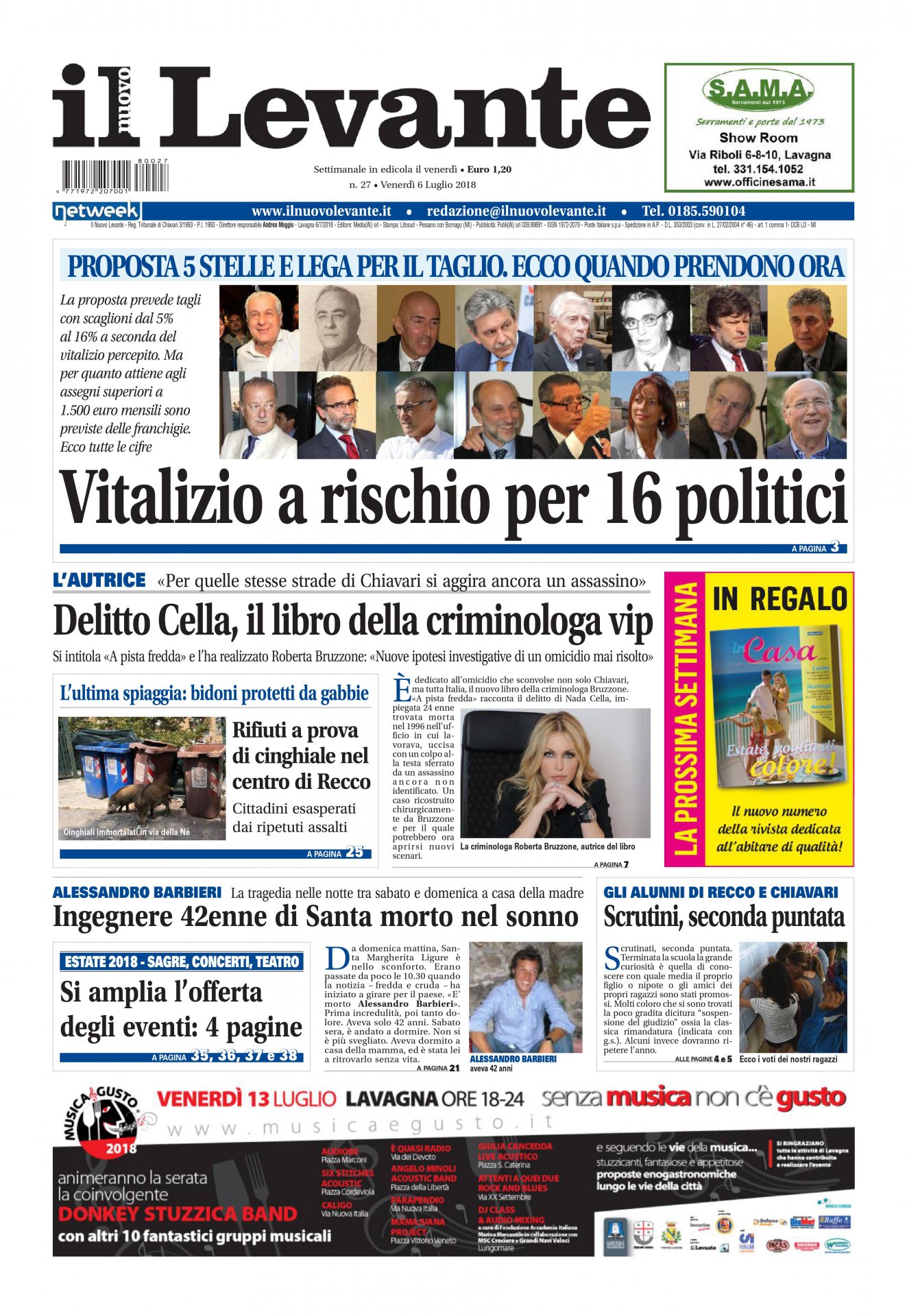 Oggi, venerdì 6 luglio, è in edicola il 27esimo numero dell’anno de Il Nuovo Levante.