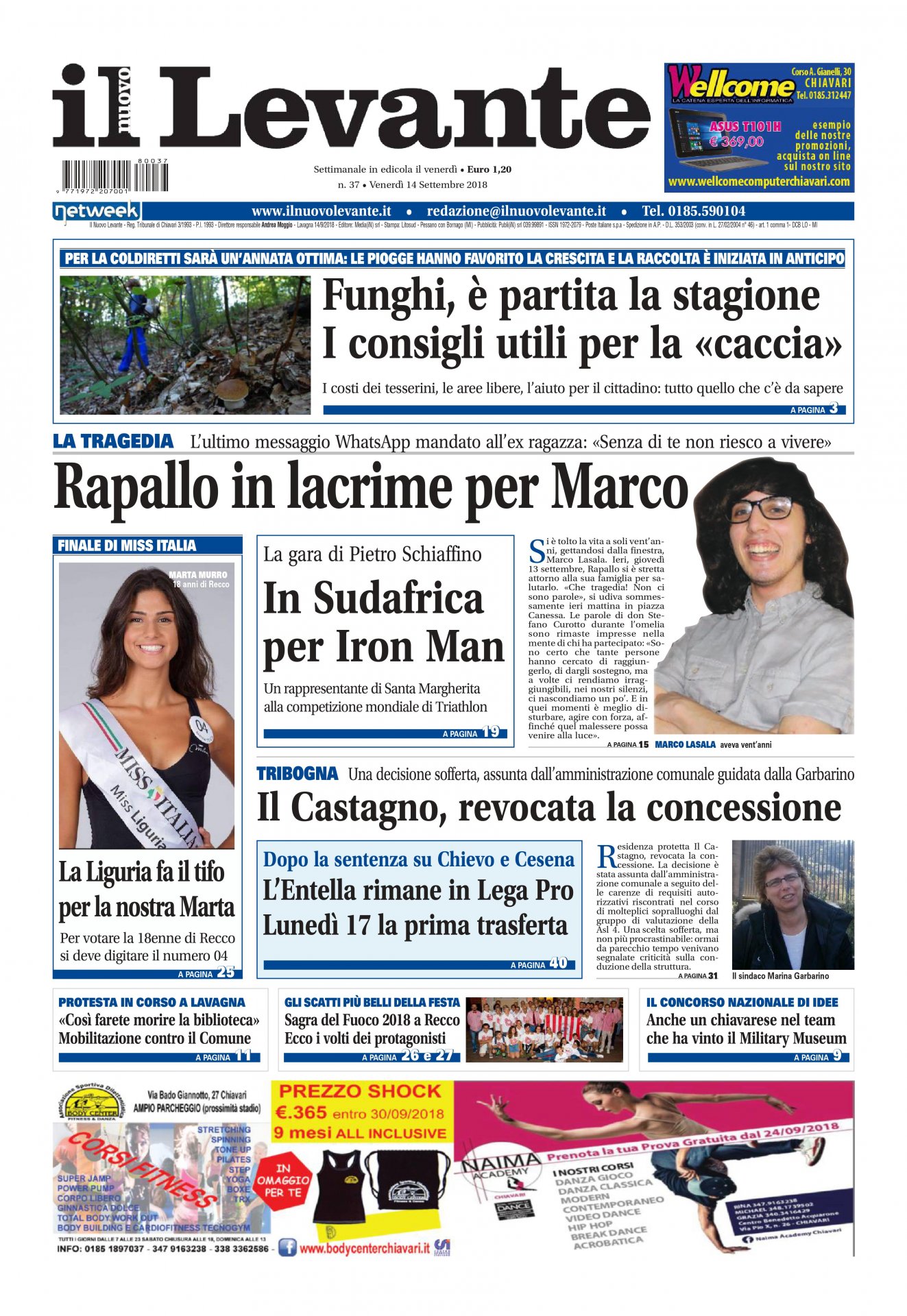 Oggi, venerdì 14 settembre, è in edicola il 37esimo numero dell’anno de Il Nuovo Levante.
