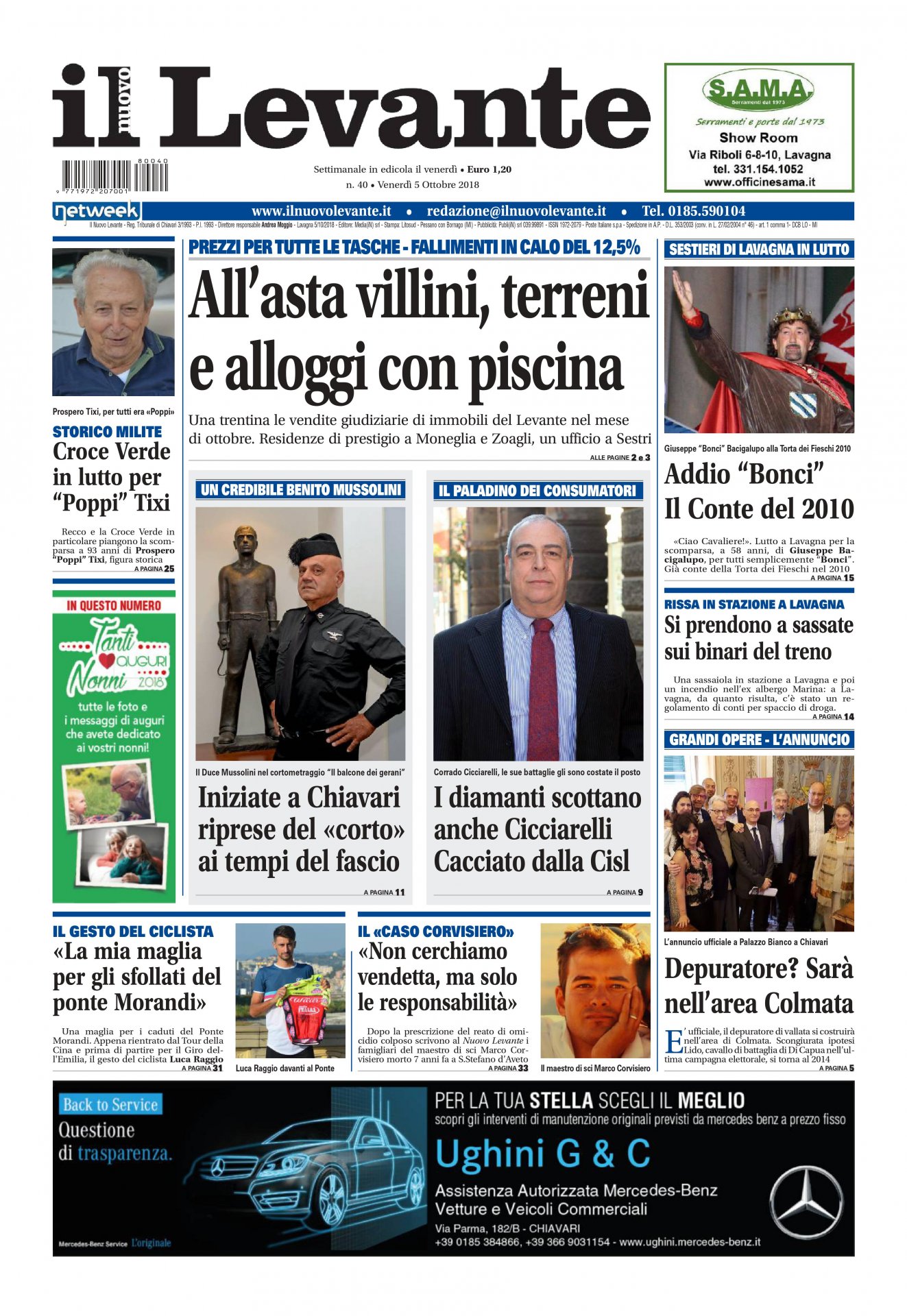 Oggi, venerdì 5 ottobre, è in edicola il 40esimo numero dell’anno de Il Nuovo Levante.