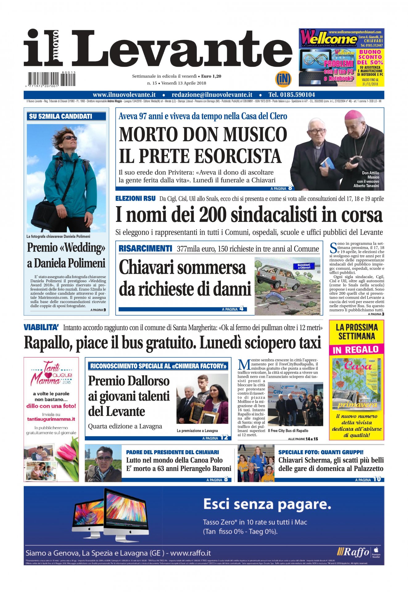 Oggi, venerdì 13 aprile, è in edicola il quindicesimo numero dell’anno de Il Nuovo Levante.