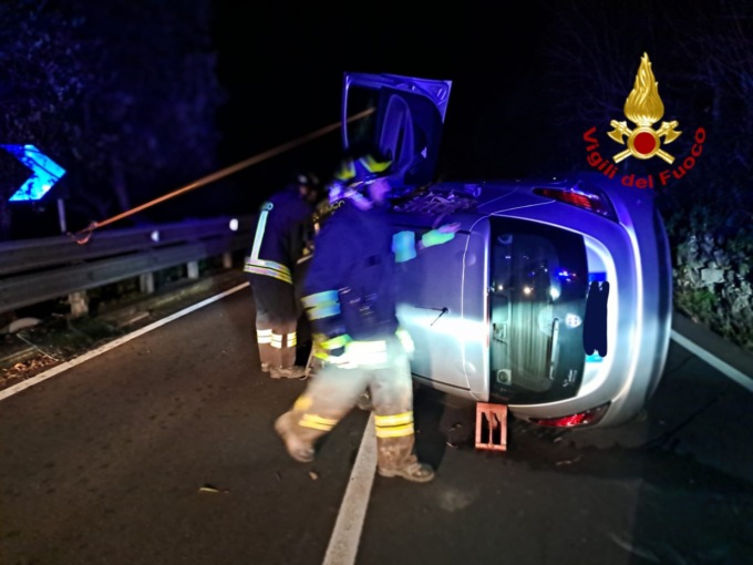 Il conducente di una autovettura che percorreva la via Aurelia a Chiavari, ha perso il controllo del veicolo ed ha finito la corsa su un fianco.