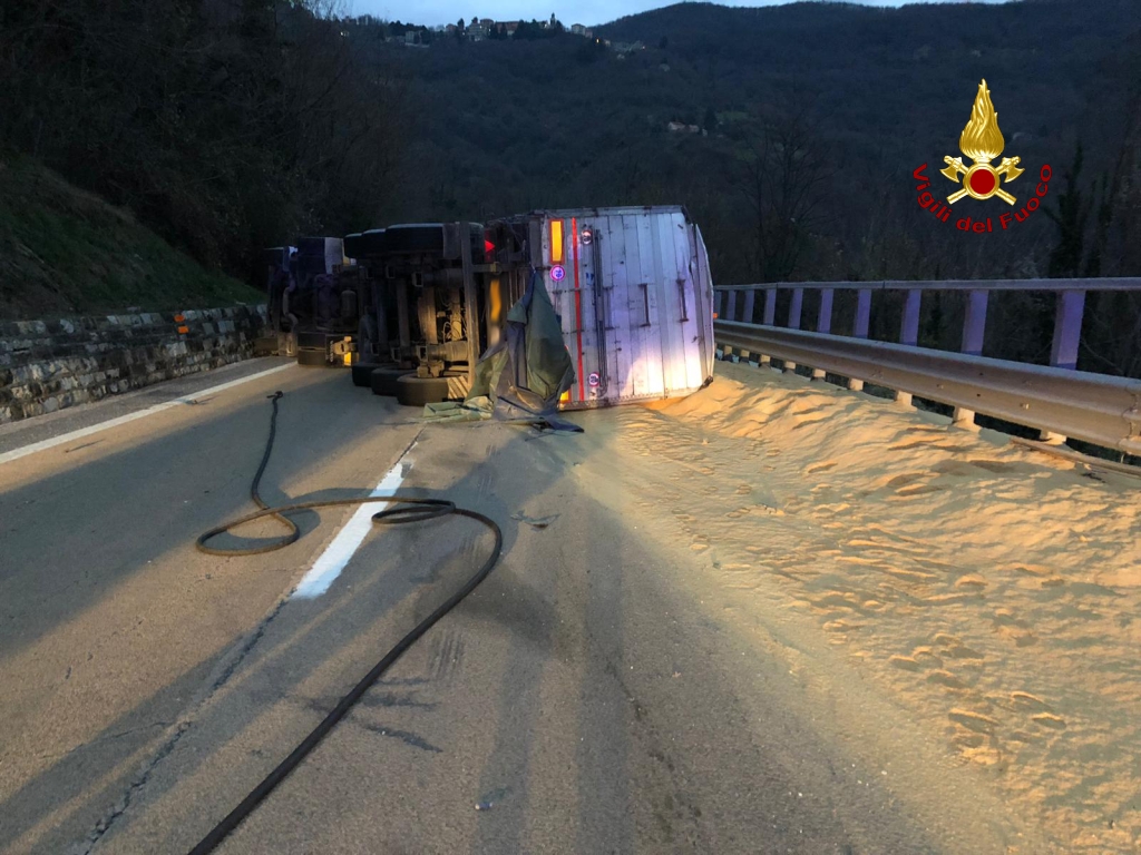 Coinvolto un autoarticolato trasportante mangime per animali