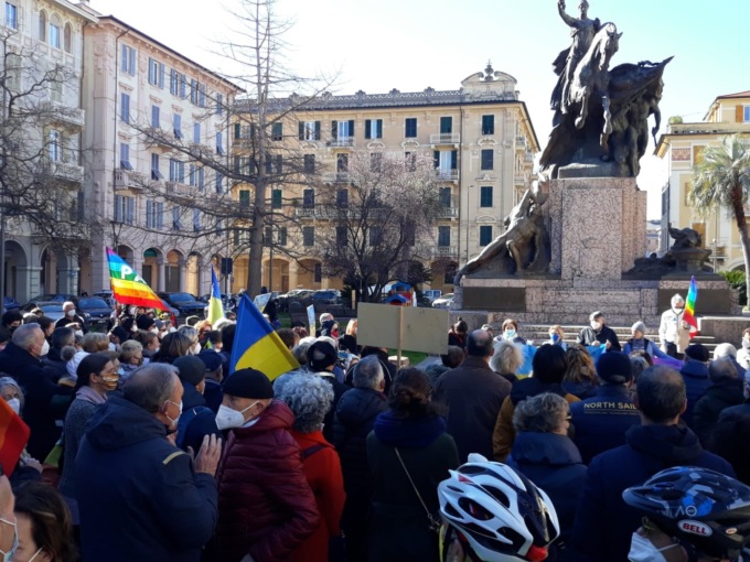 Manifestazione questa mattina in Piazza Roma a Chiavari con centinaia di persone per dire No alla guerra in Ucraina
